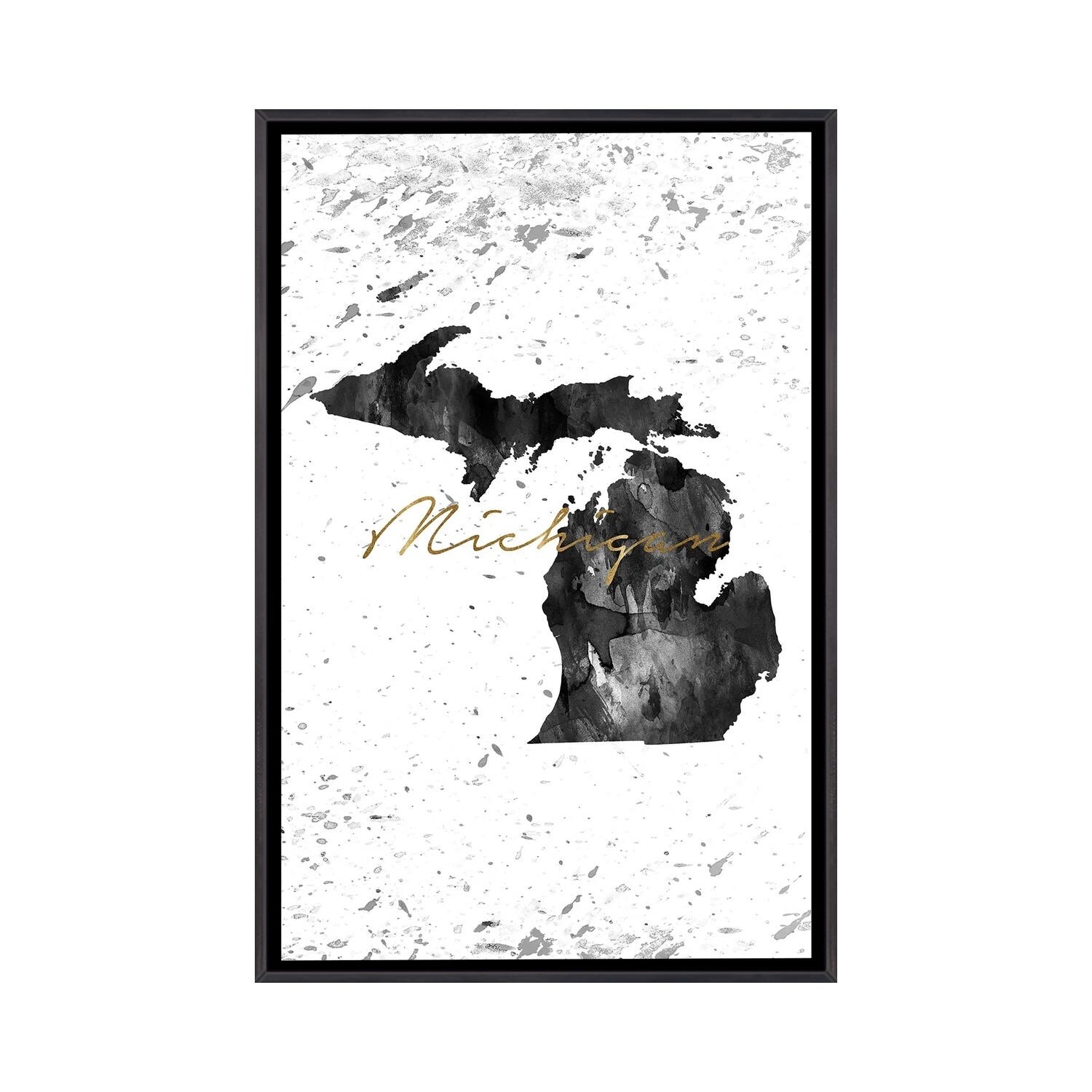 iCanvas "Michigan Black And White Gold" by WallDecorAddict Framed