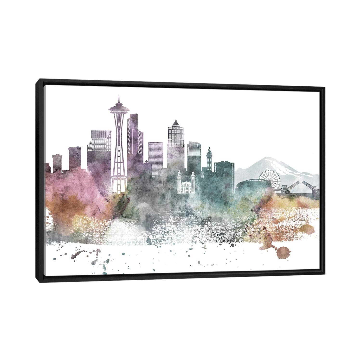 iCanvas "Seattle Pastel Skylines" by WallDecorAddict Framed Canvas Print