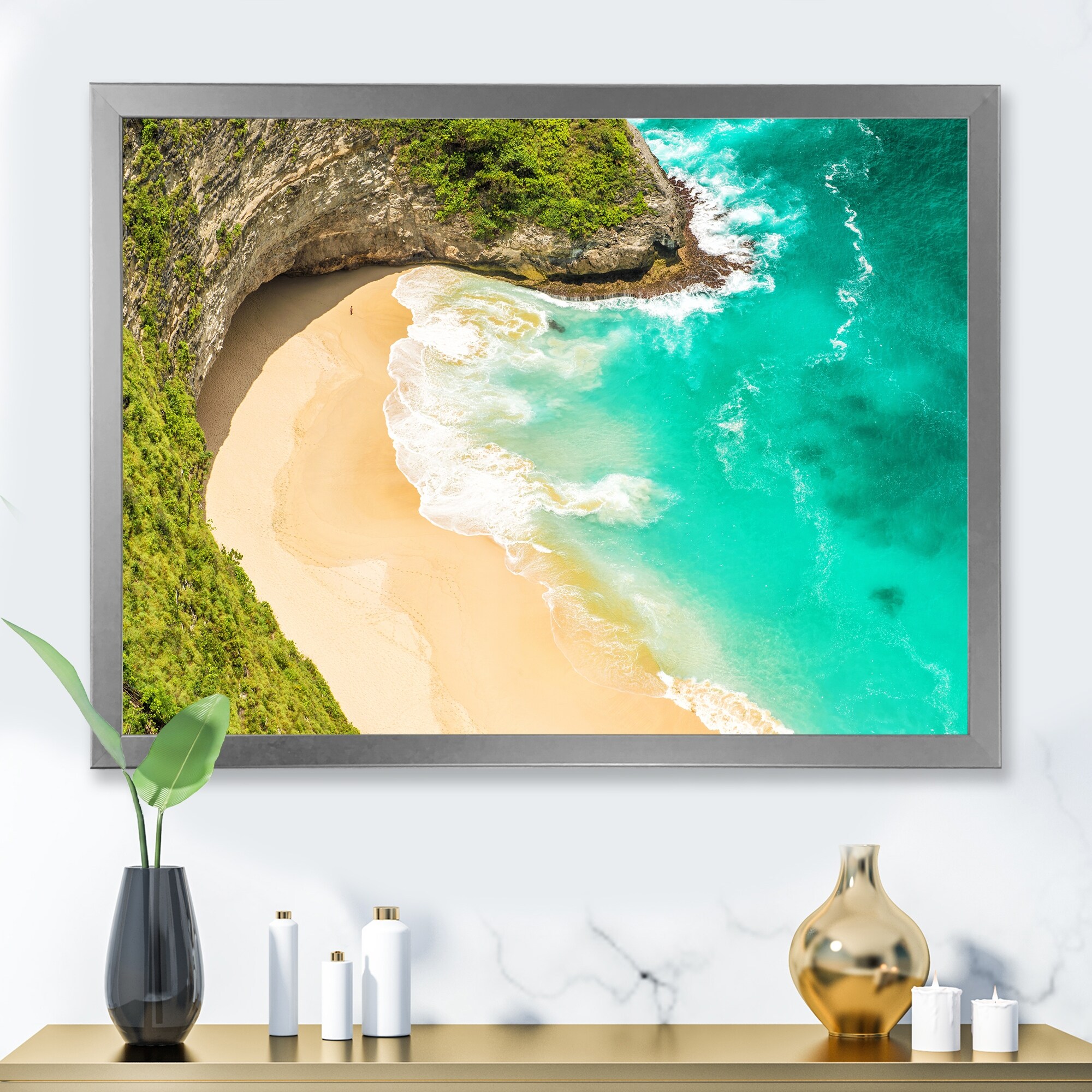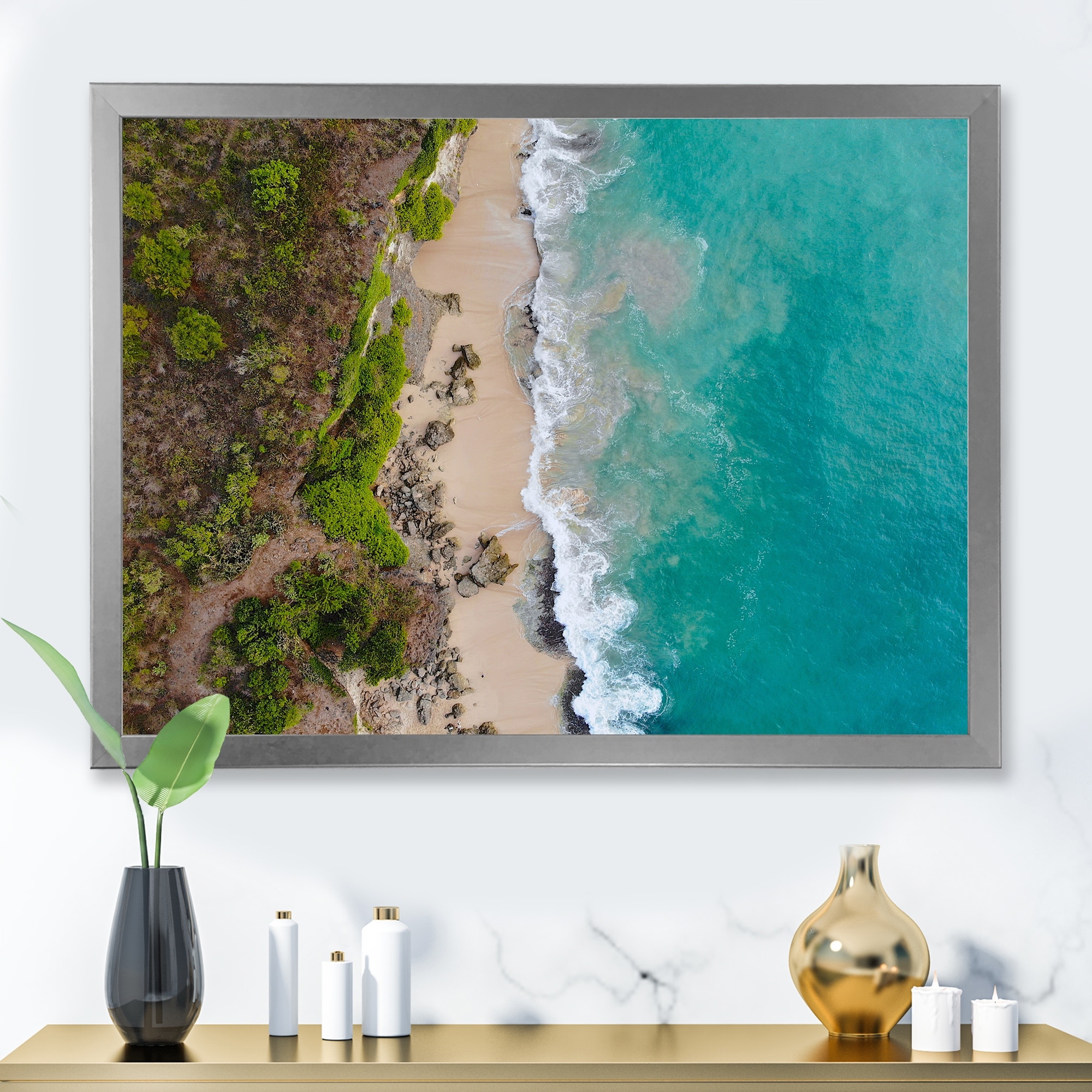 Designart "Aerial View of Tropical Beach II" Nautical & Coastal Framed Art Print