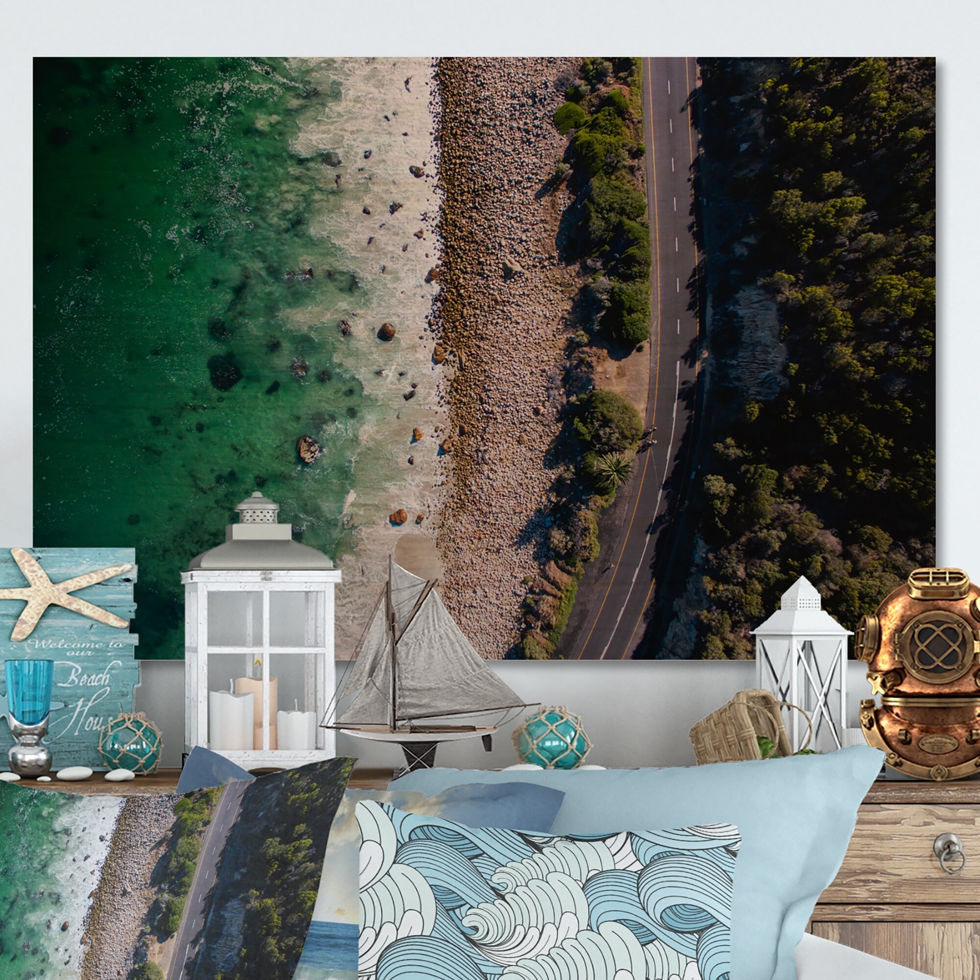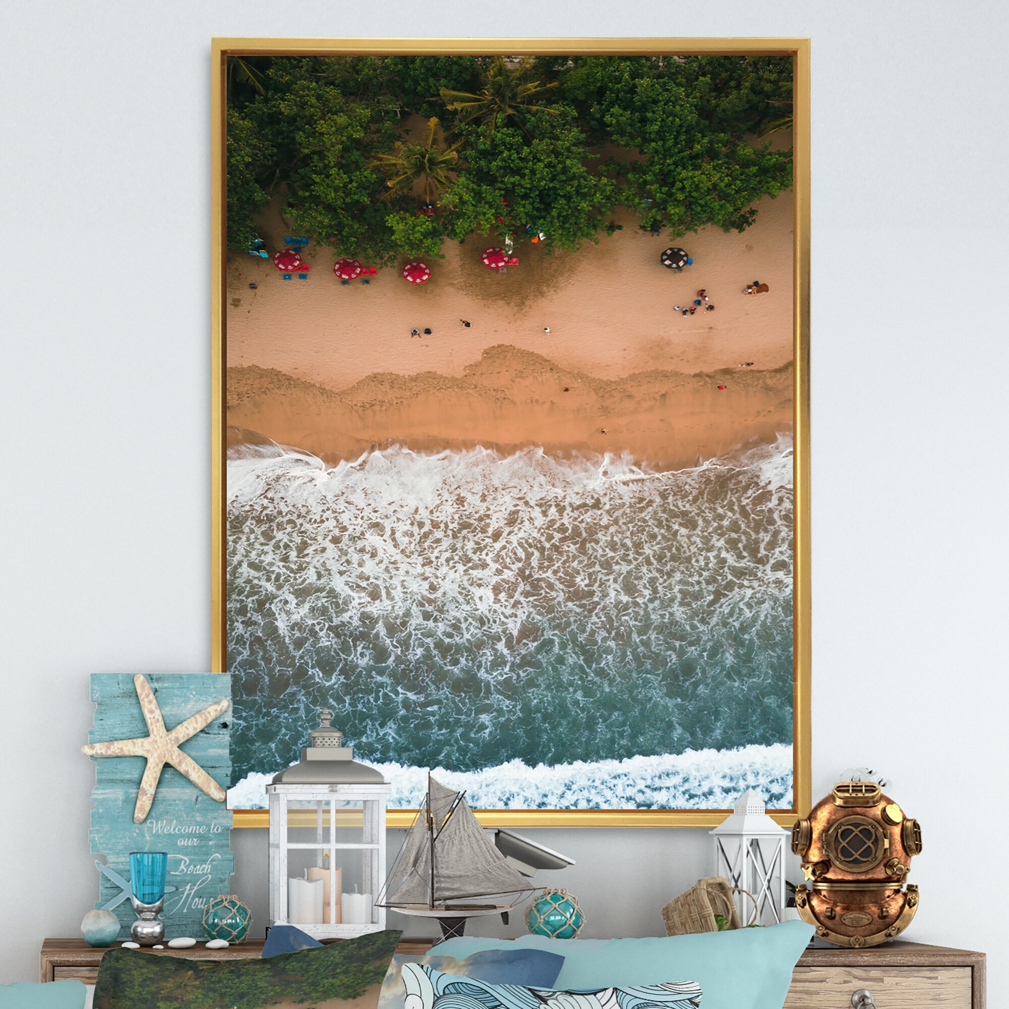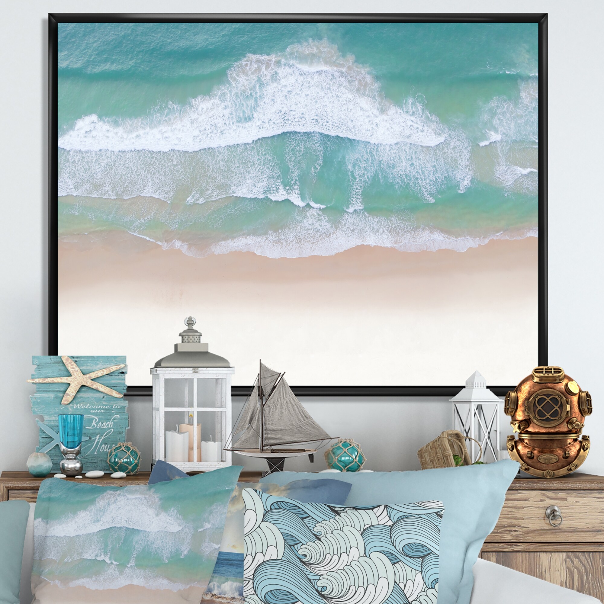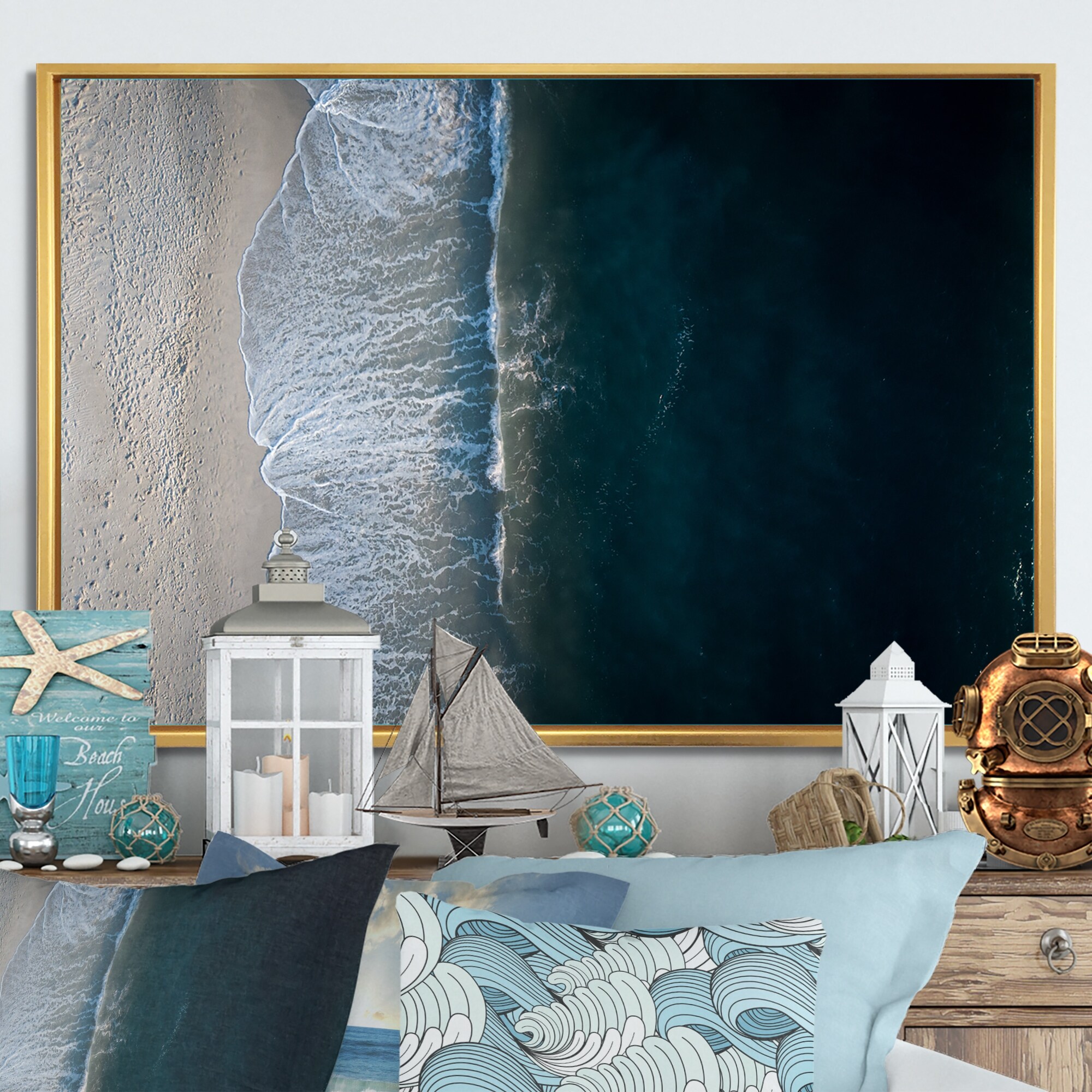 Designart "Ocean Beach Aerial View XI" Nautical & Coastal Framed Canvas Art Print