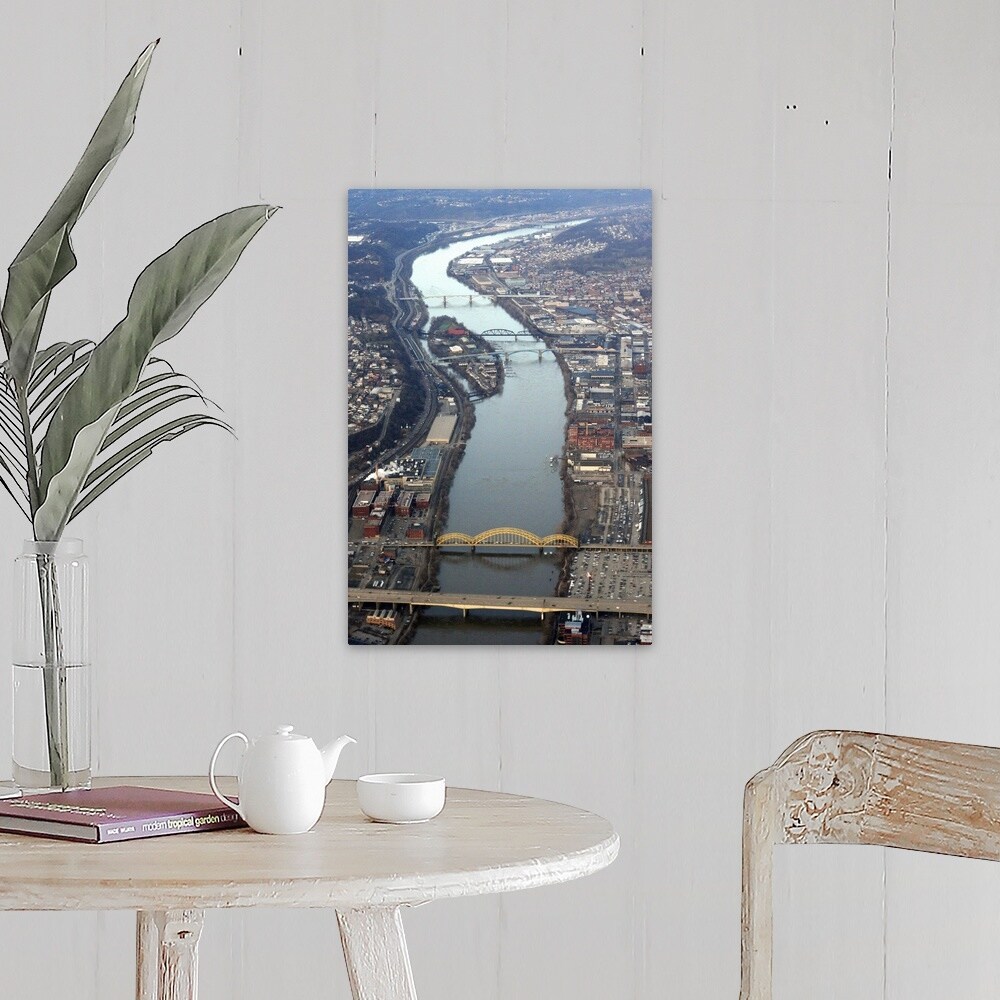 "Aerial shot of bridges over a river in Pittsburgh, Pennsylvania" Canvas Wall Art