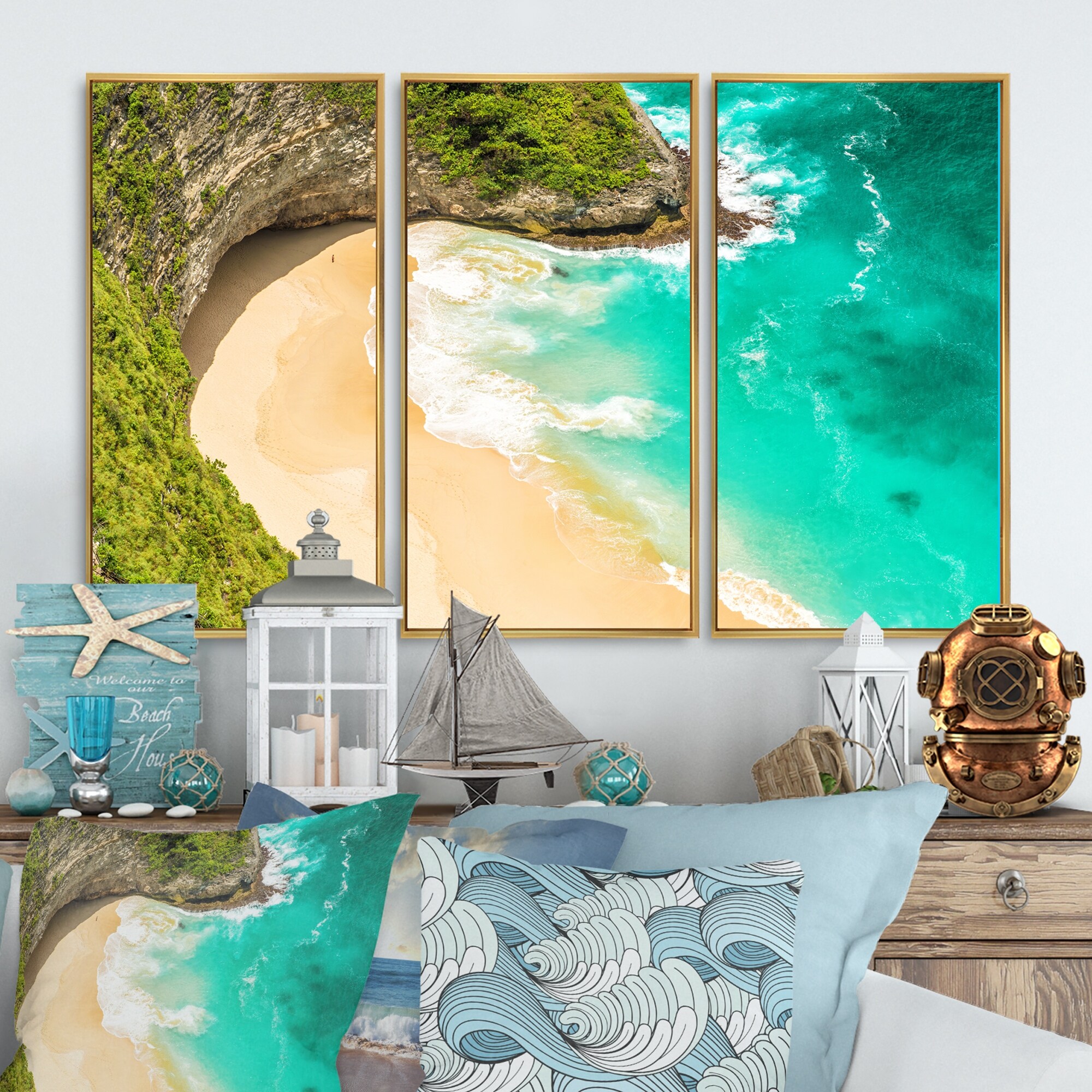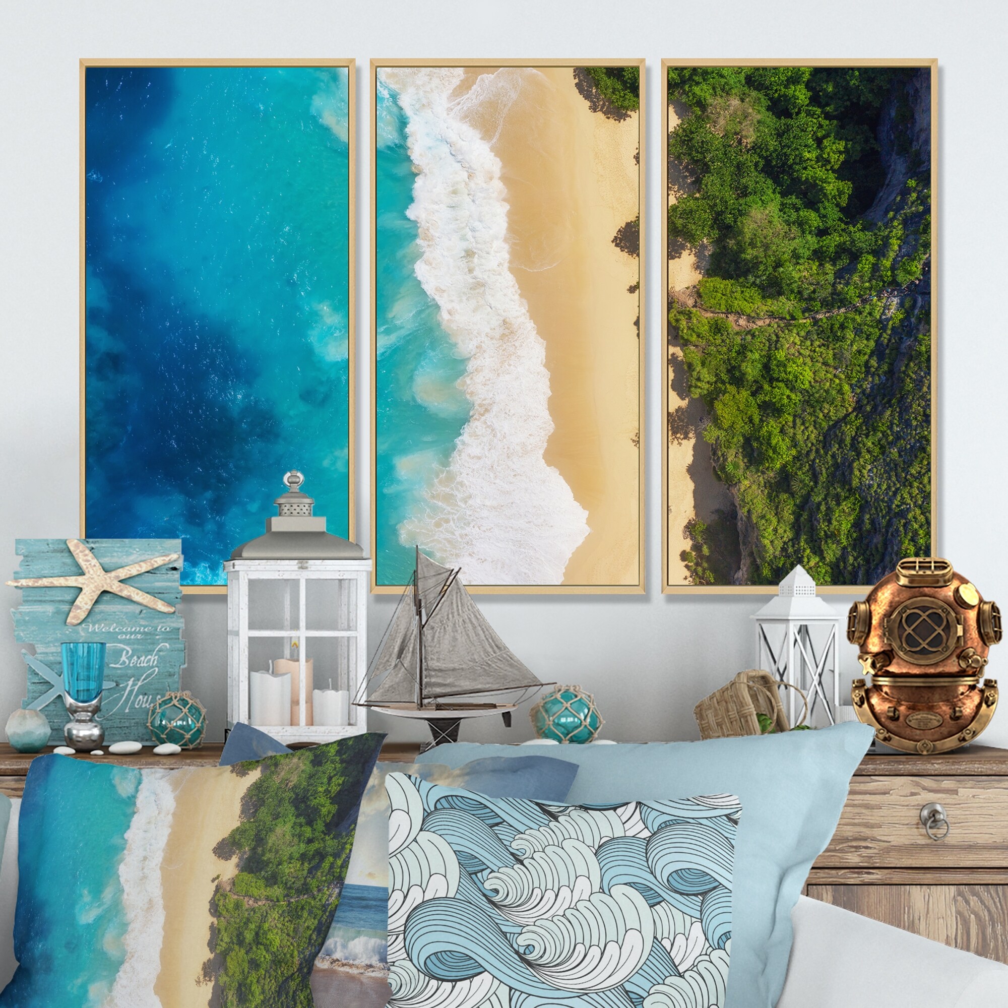 Designart "Aerial View of Sea And Turquoise Beach" Nautical & Coastal Framed Artwork Set of 3 - 4 Colors of Frames