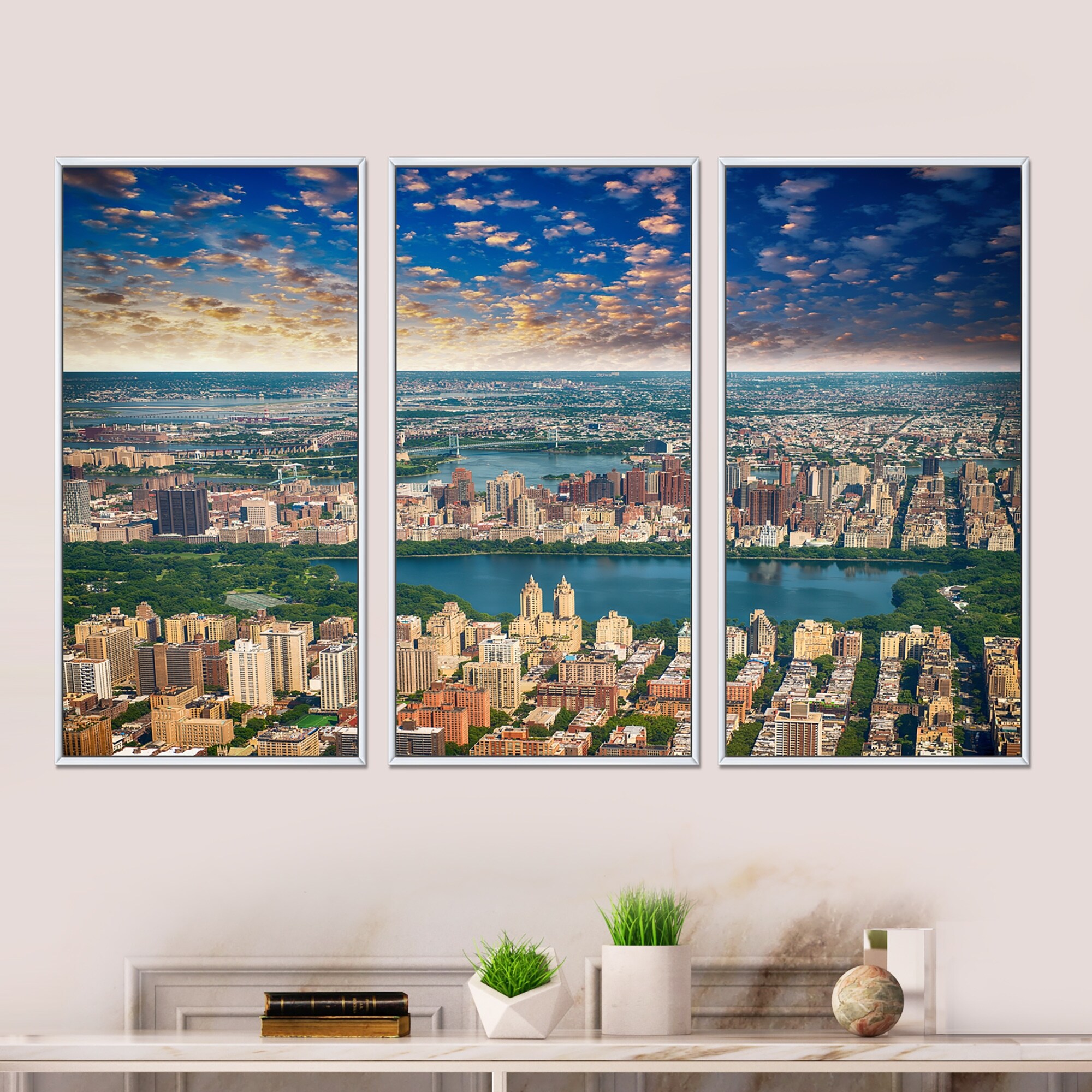 Designart "Aerial View of Central Park" Cityscape Framed Art Set of 3 - 4 Colors of Frames