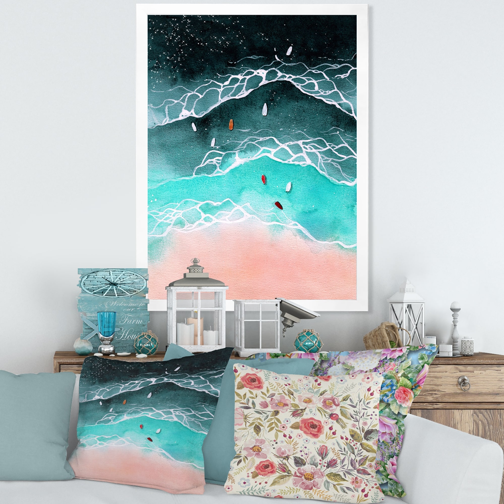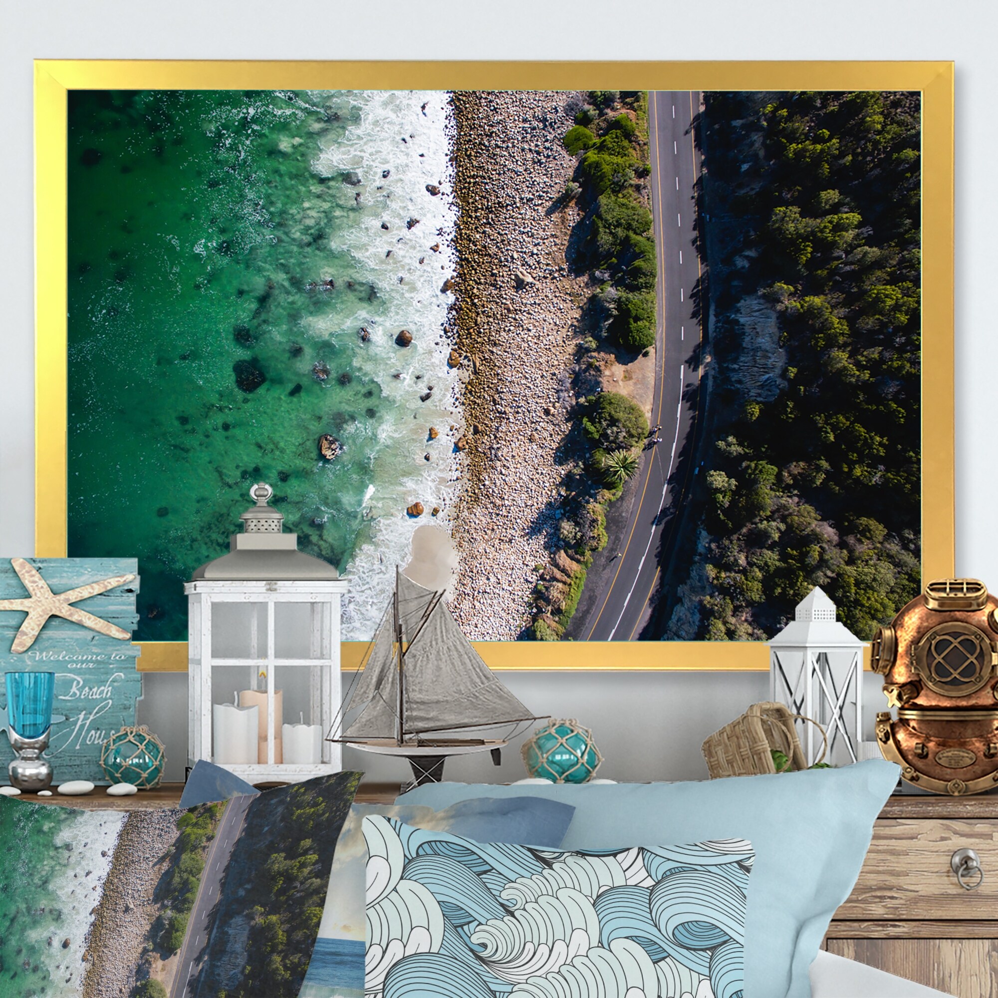 Designart "Ocean Beach Aerial View V" Nautical & Coastal Framed artwork