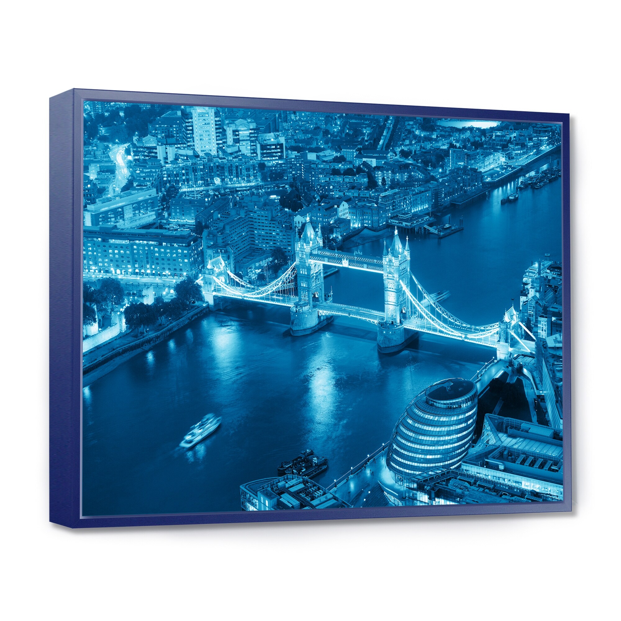 Designart "Blue London Night Aerial View" Cityscape Framed Canvas Print