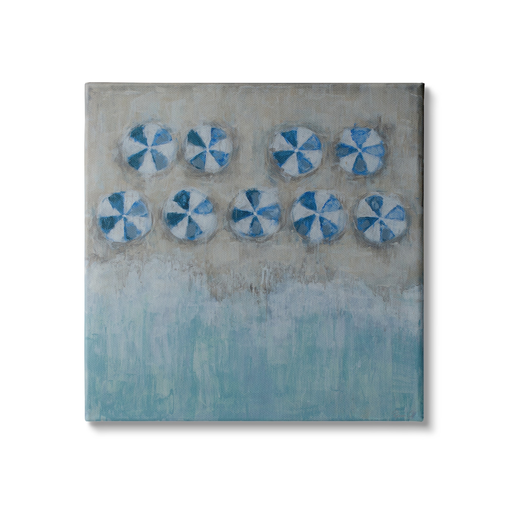Stupell Industries Beach Umbrella Coast Abstract Aerial Landscape Painting Canvas Wall Art - Blue