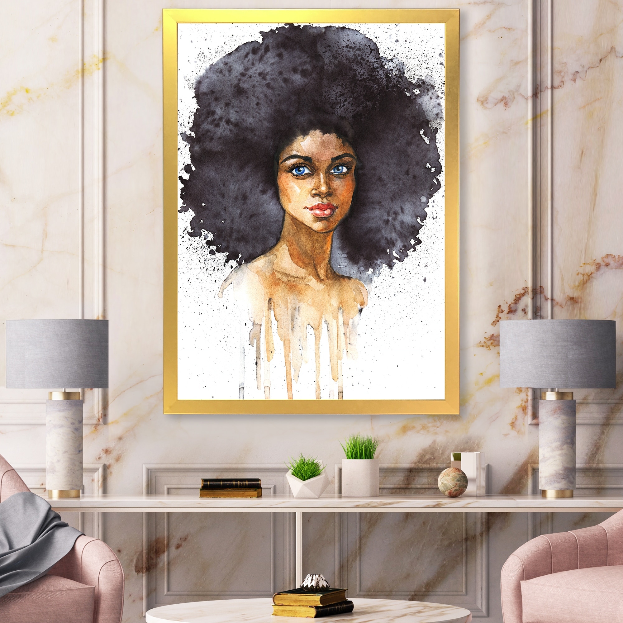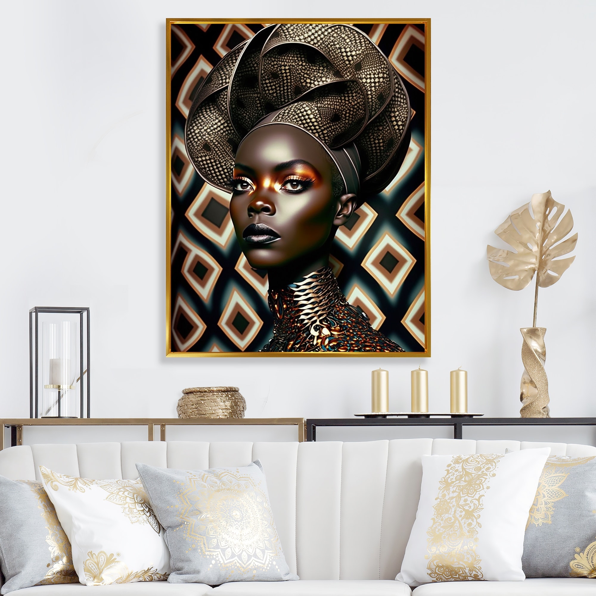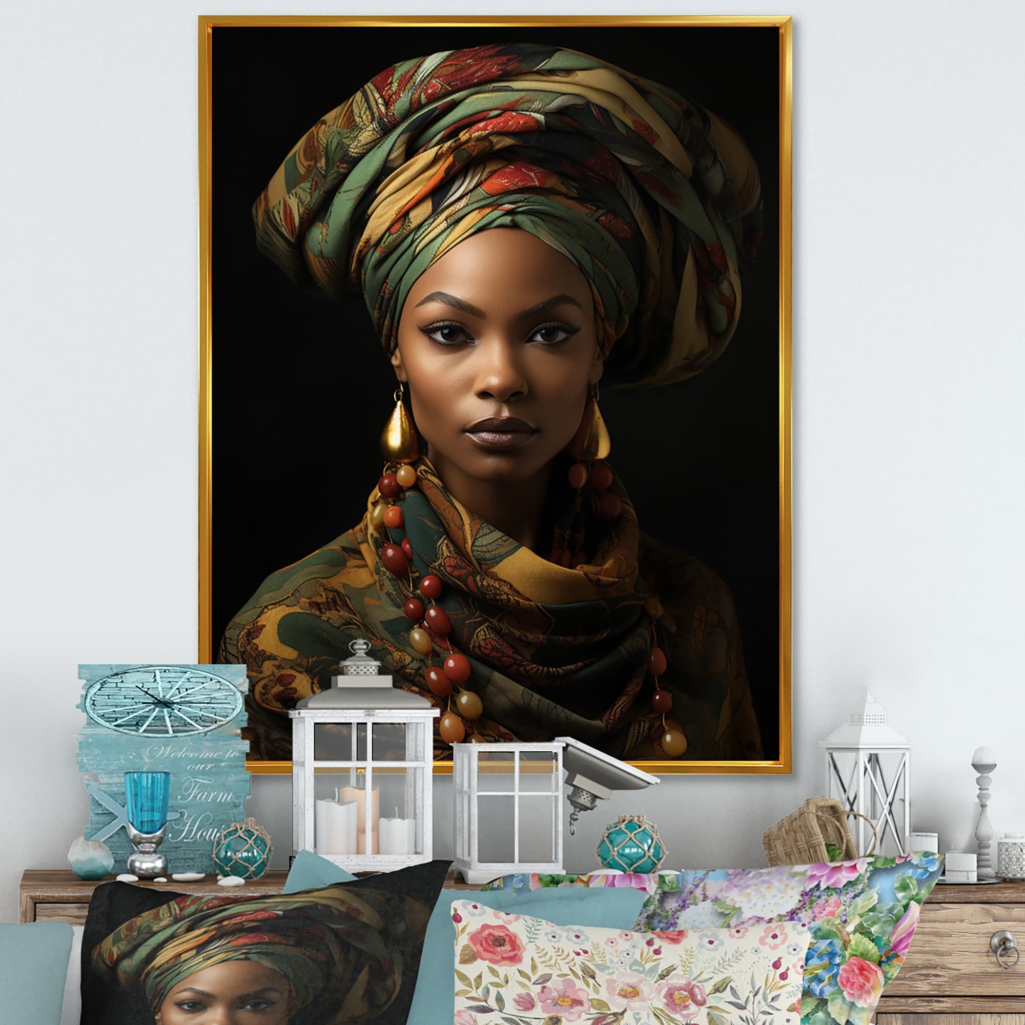 Designart "Portrait Of Glamorous African Lady VI" African American Framed Canvas Wall Art Print