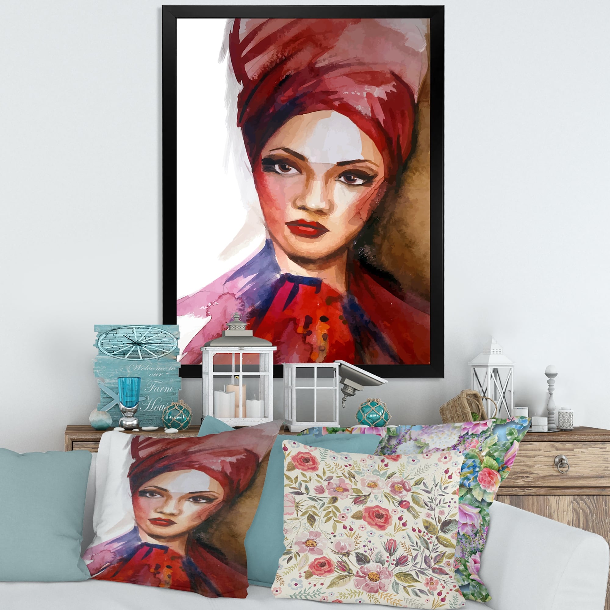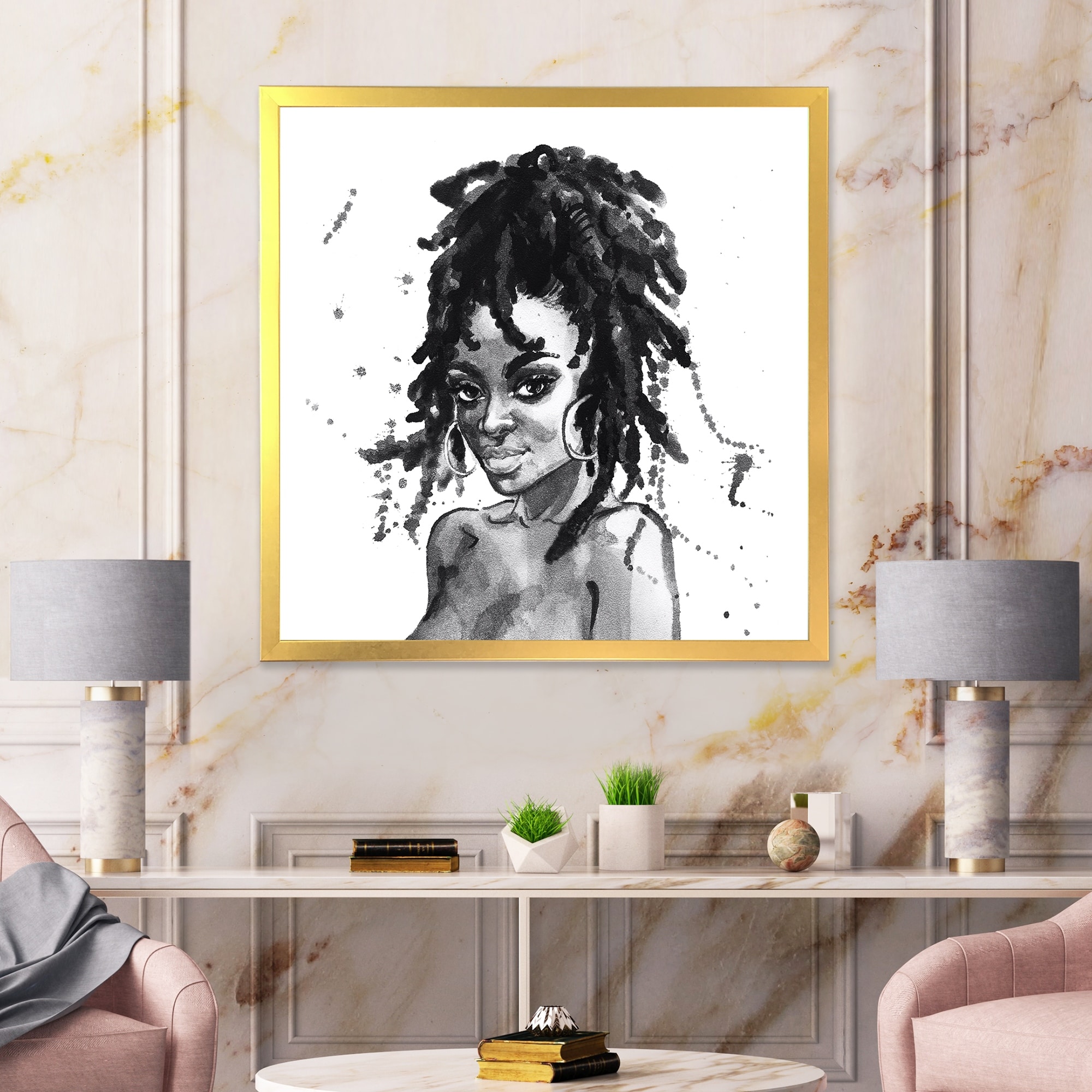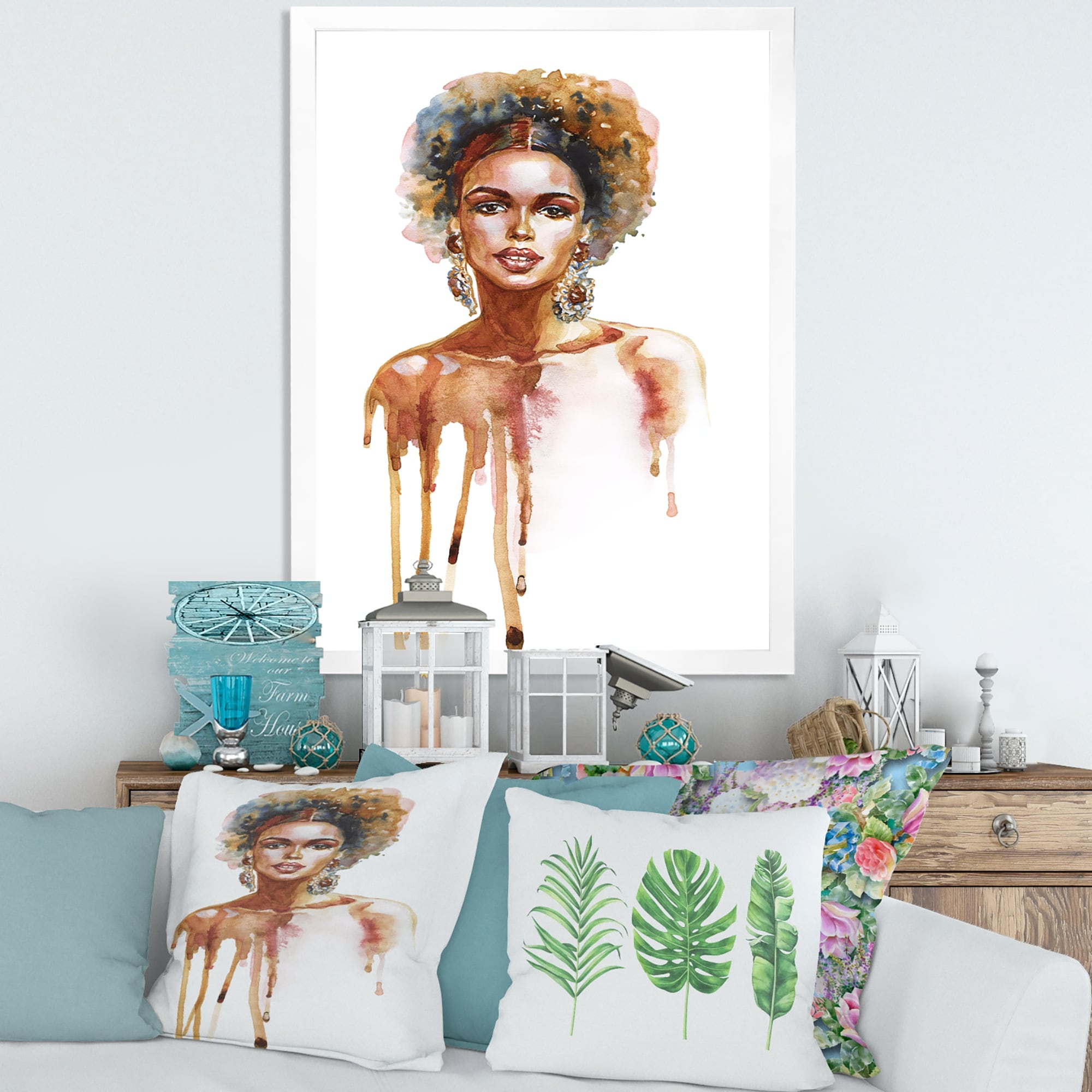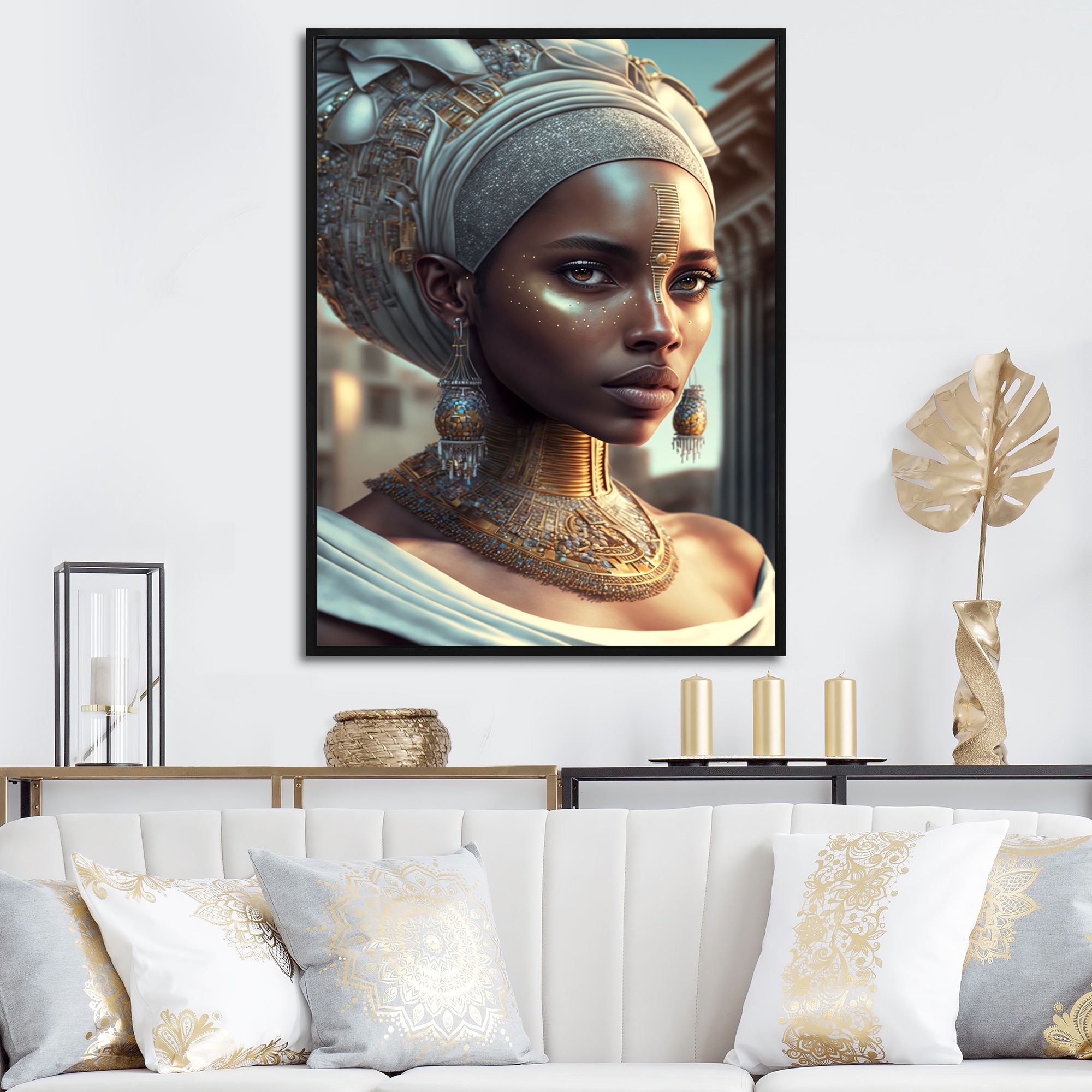 Designart "Portrait Of Glamorous African Lady VI" African American Framed Canvas Wall Art Print