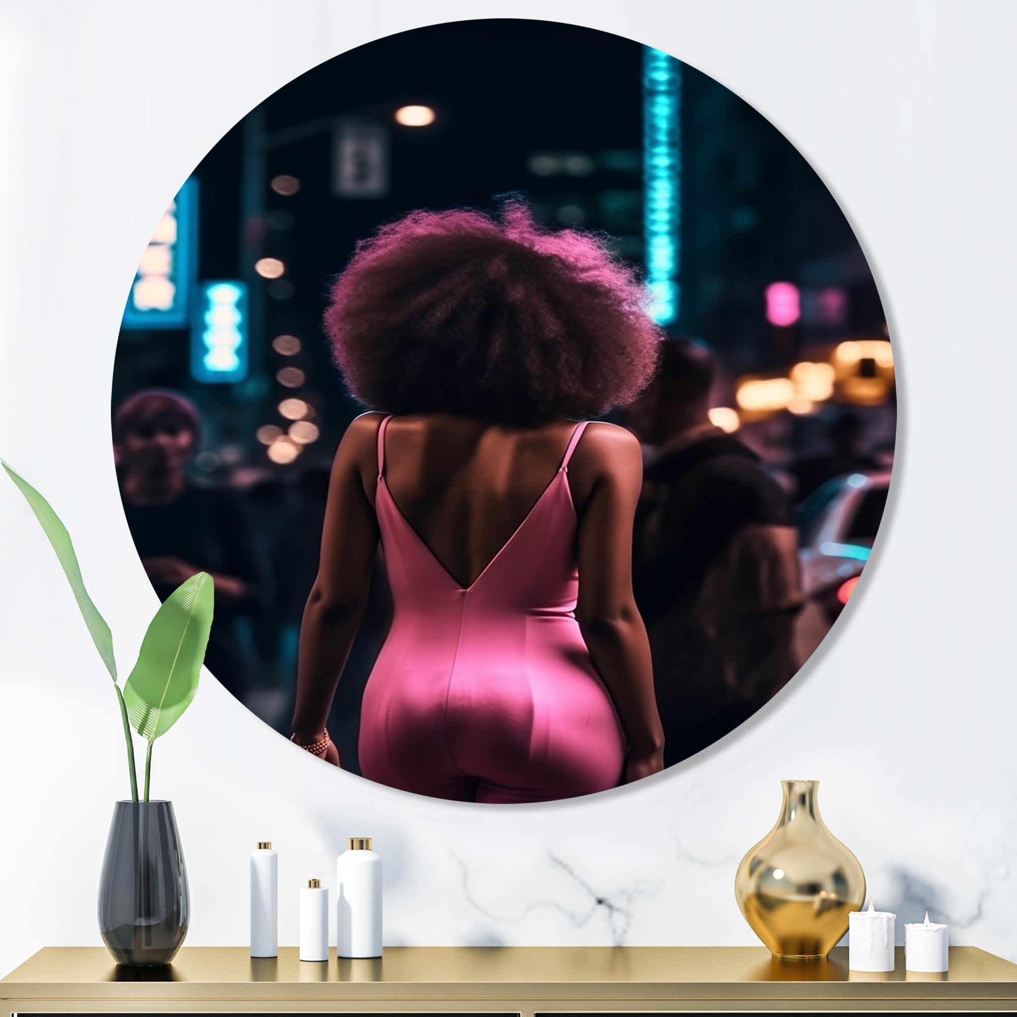 Designart "Fashionable African American Woman II" African American Woman Metal Round Wall Art