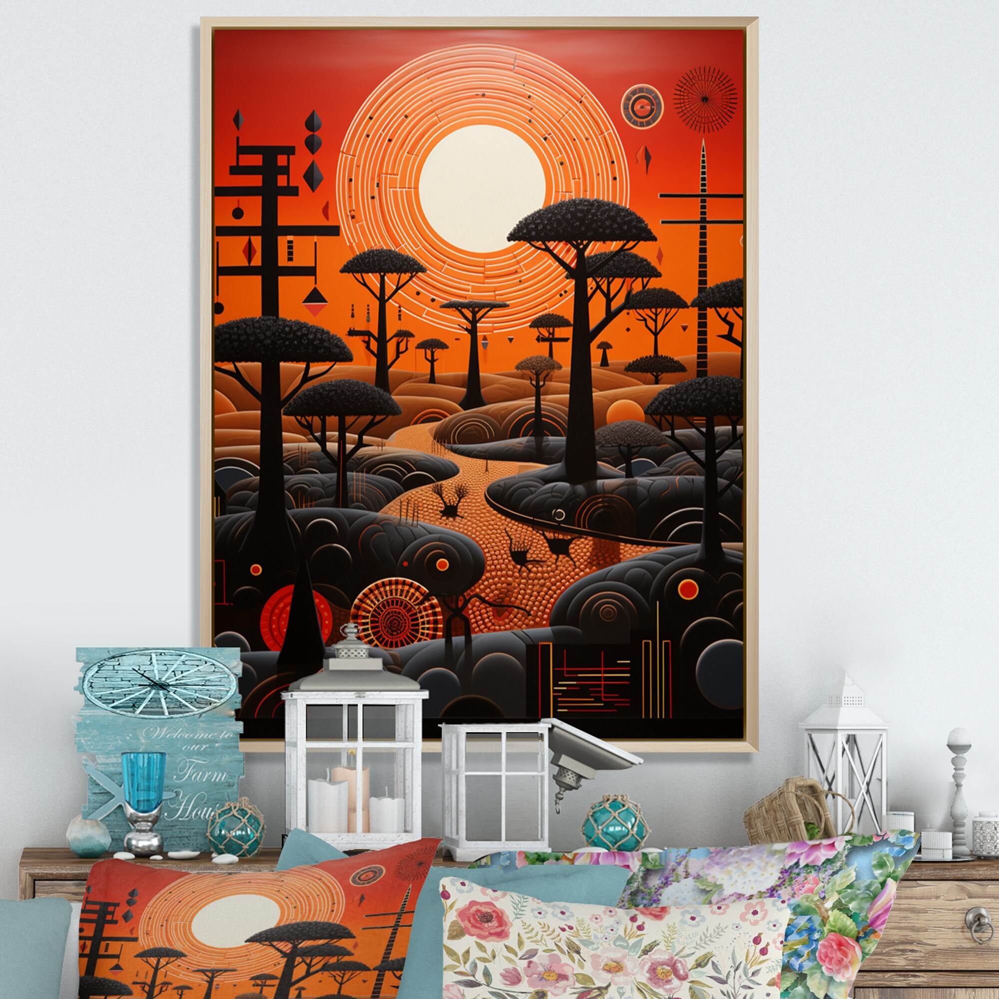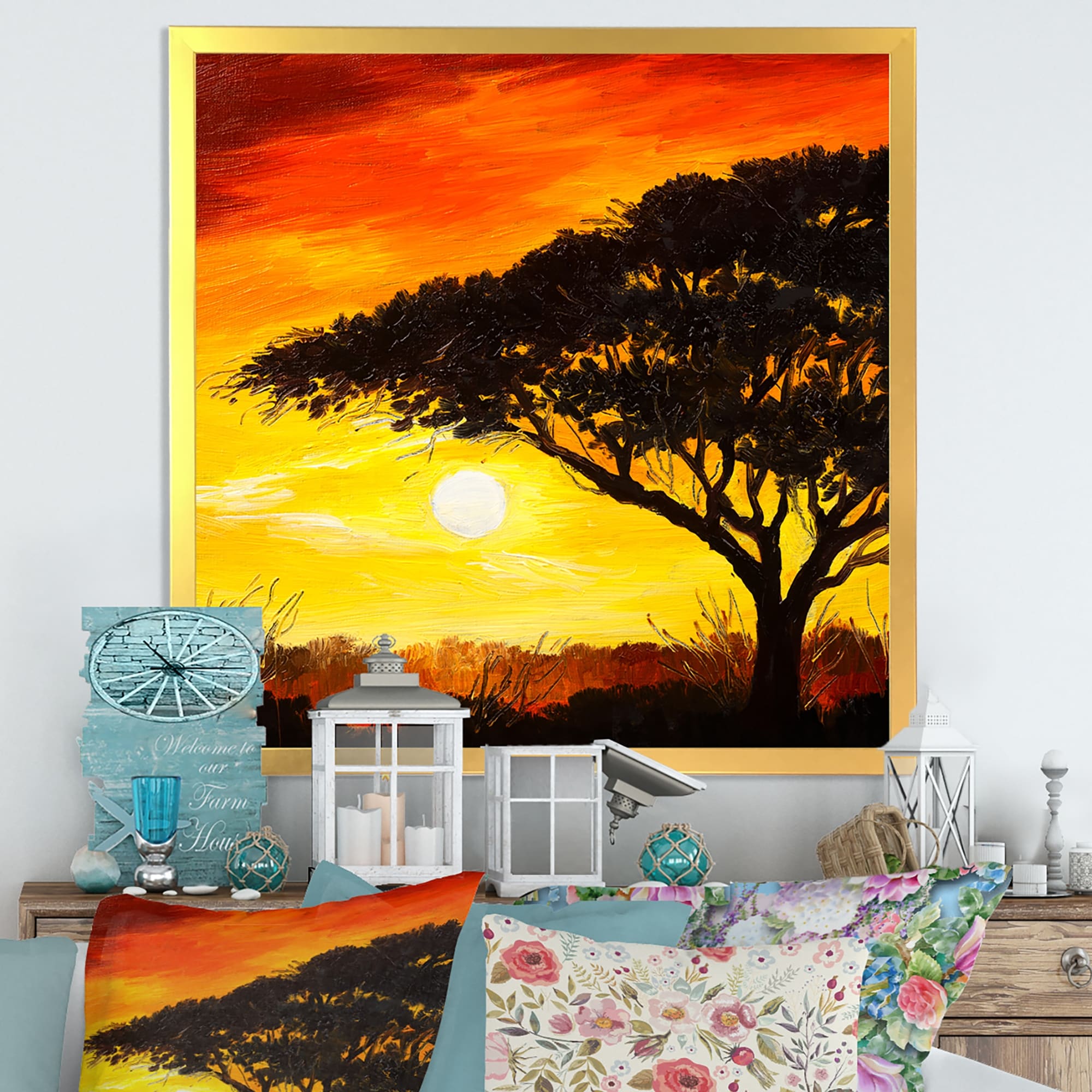 Designart "African Tree Under Wild Sunset" Traditional Framed Wall Art