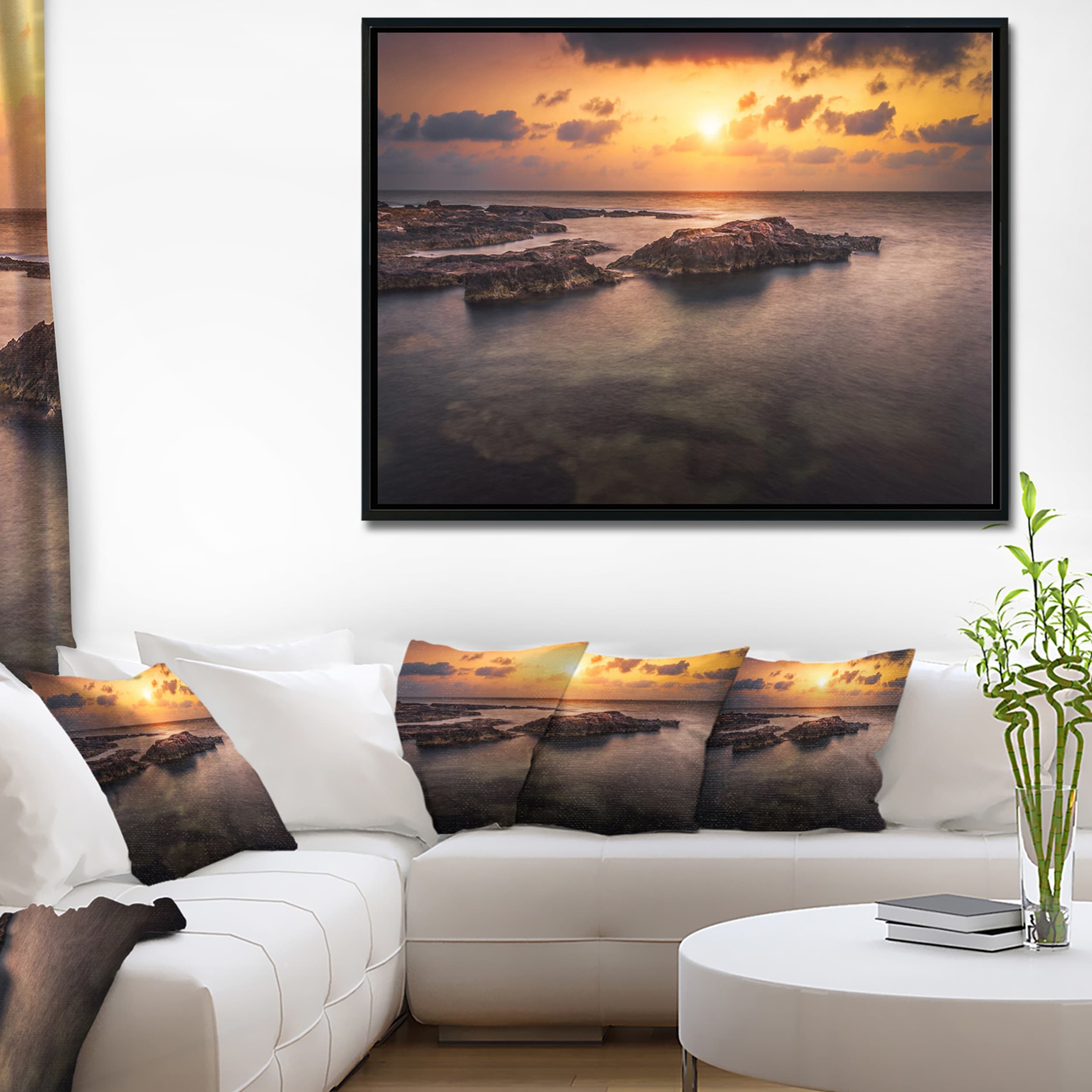 Designart "Sunset over African Seashore" Oversized Beach Framed Canvas Artwork Print