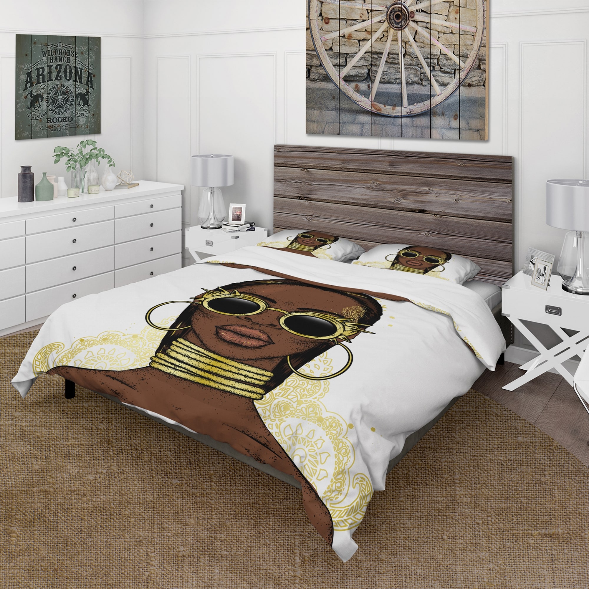 Designart 'Portrait Of African American Woman, Ornaments II' Modern Duvet Cover Set