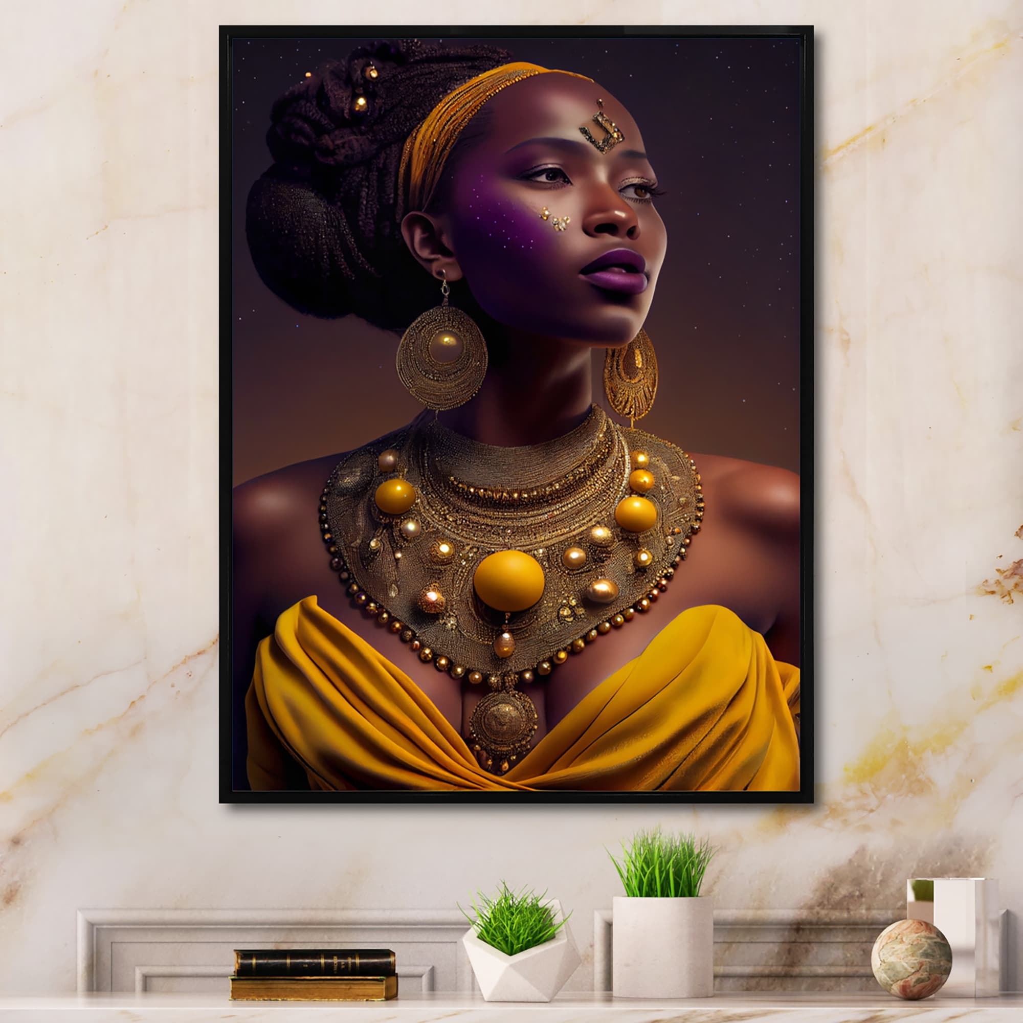 Designart "Queen African Woman Under Moon IV" Contemporary Glam Framed Canvas Art Print