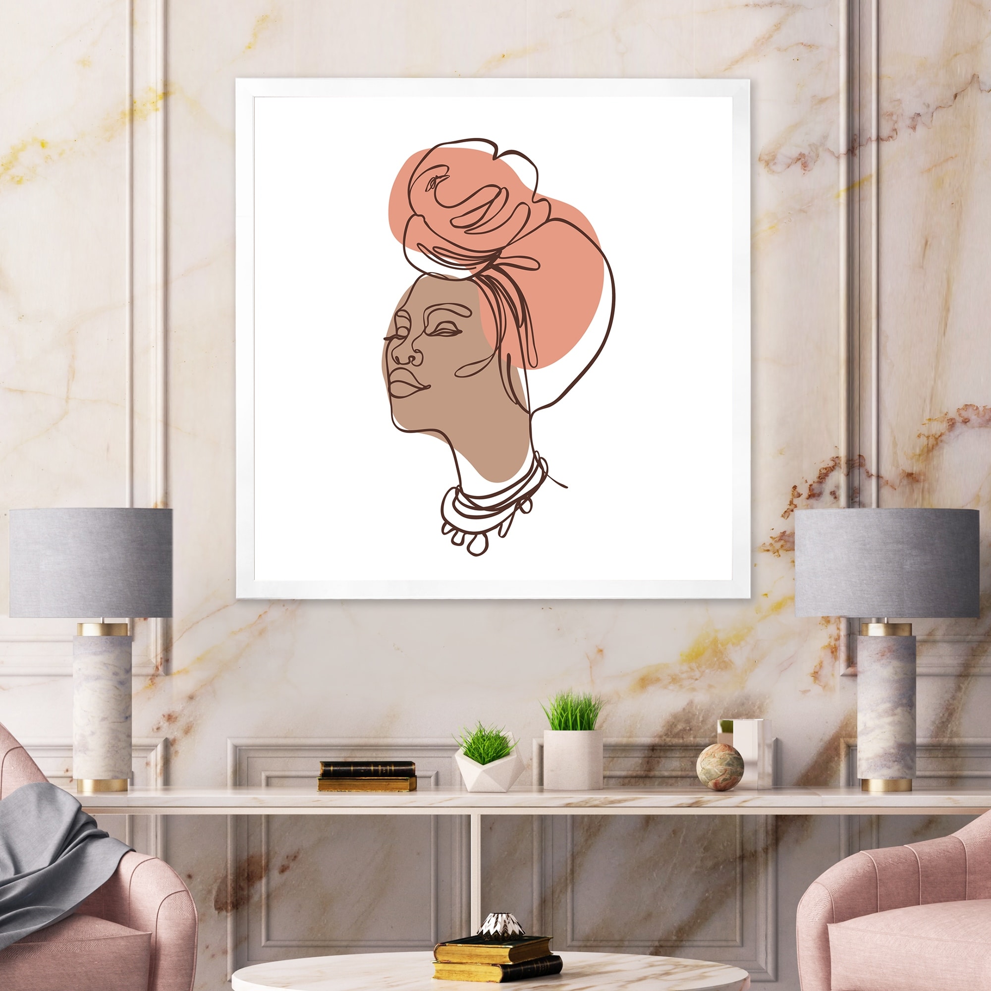 Designart "One Line Portrait of African American Woman IV" Modern Framed Art Print