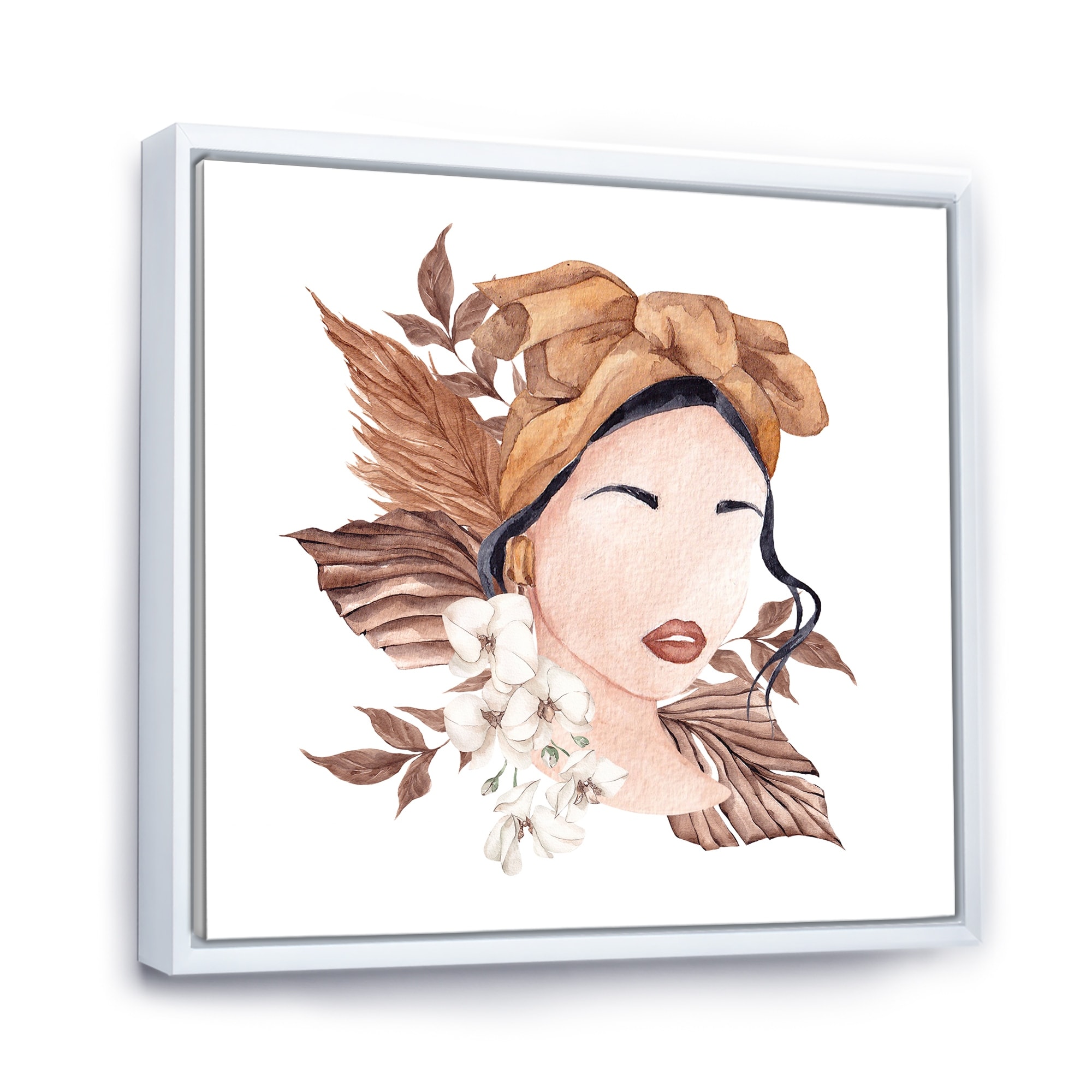 Designart "African American Woman, Dried Flowers, Leaves VI" Glam Framed Canvas Wall Art Print