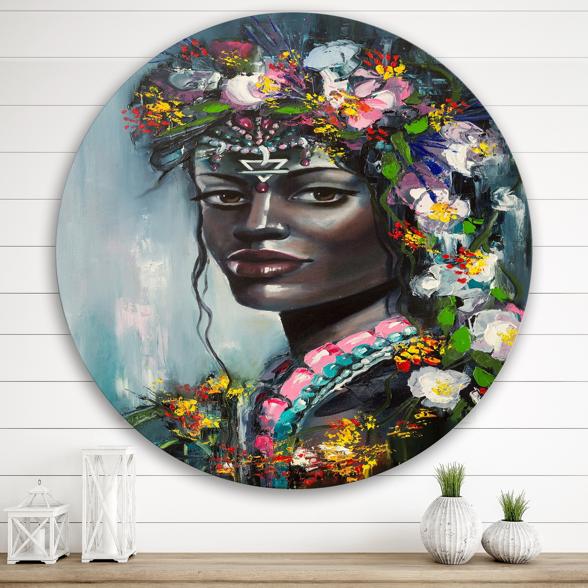 Designart 'Portrait Of Traditional African American Woman' Modern Metal Circle Wall Art