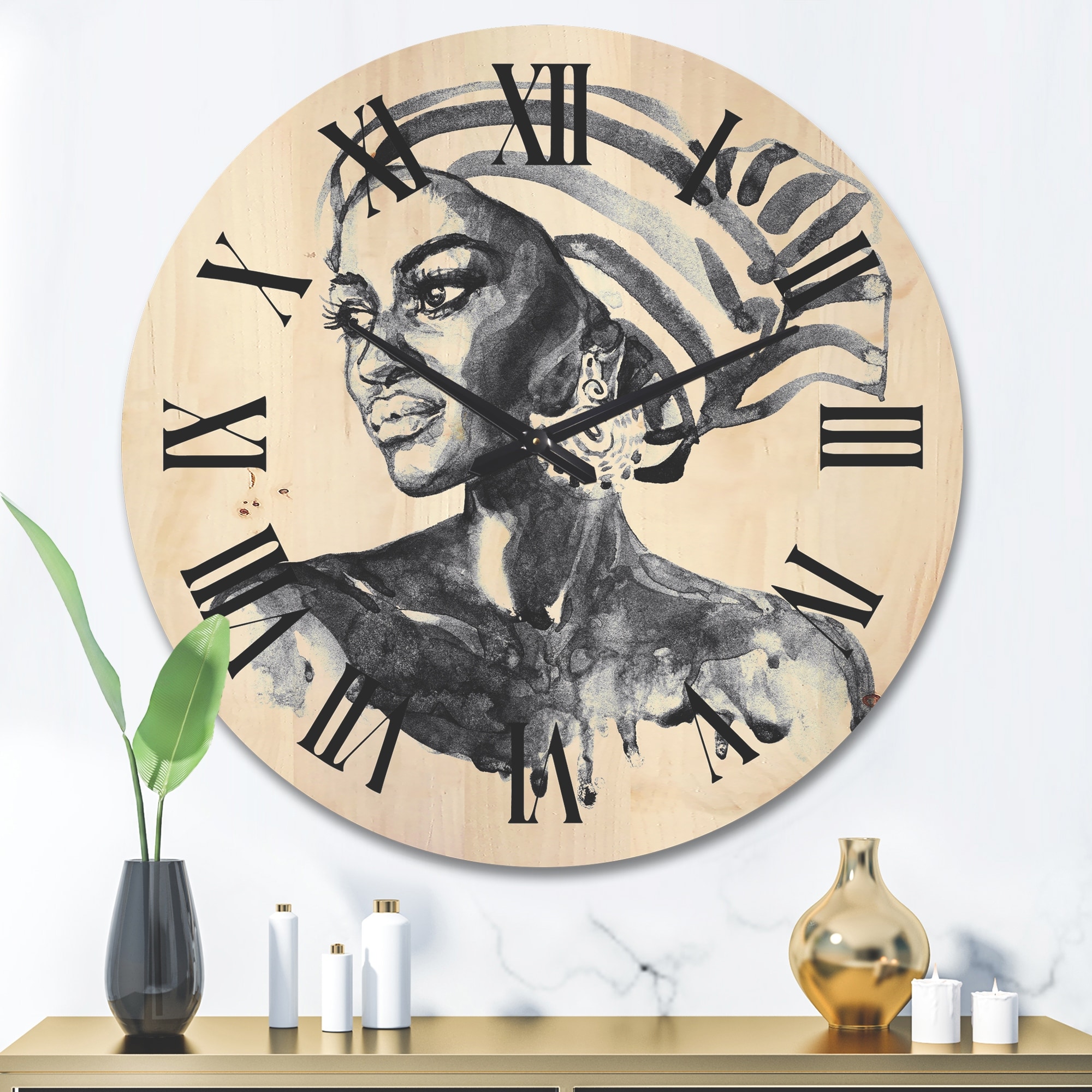Designart 'Portrait of African American Woman XII' Modern Wood Wall Clock