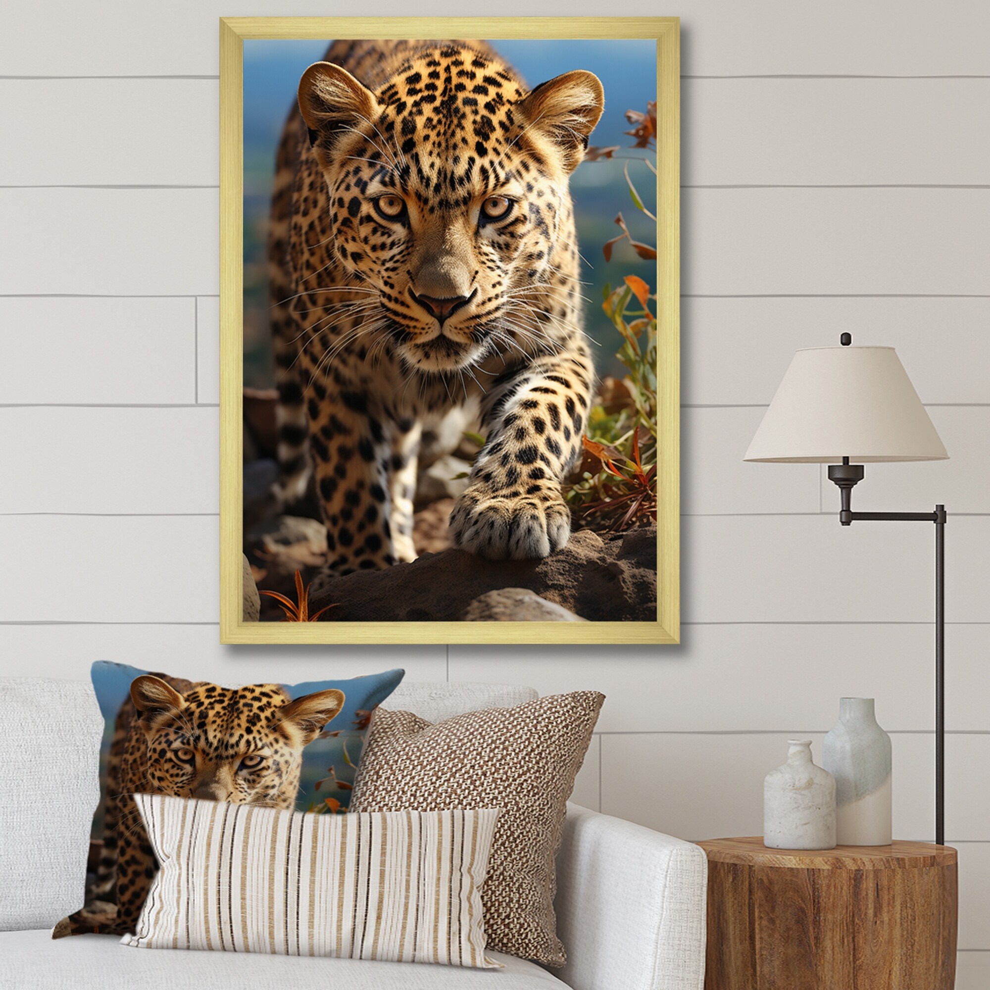 Designart "African Leopard Portrait II" Animals Leopard Framed Wall Art Prints