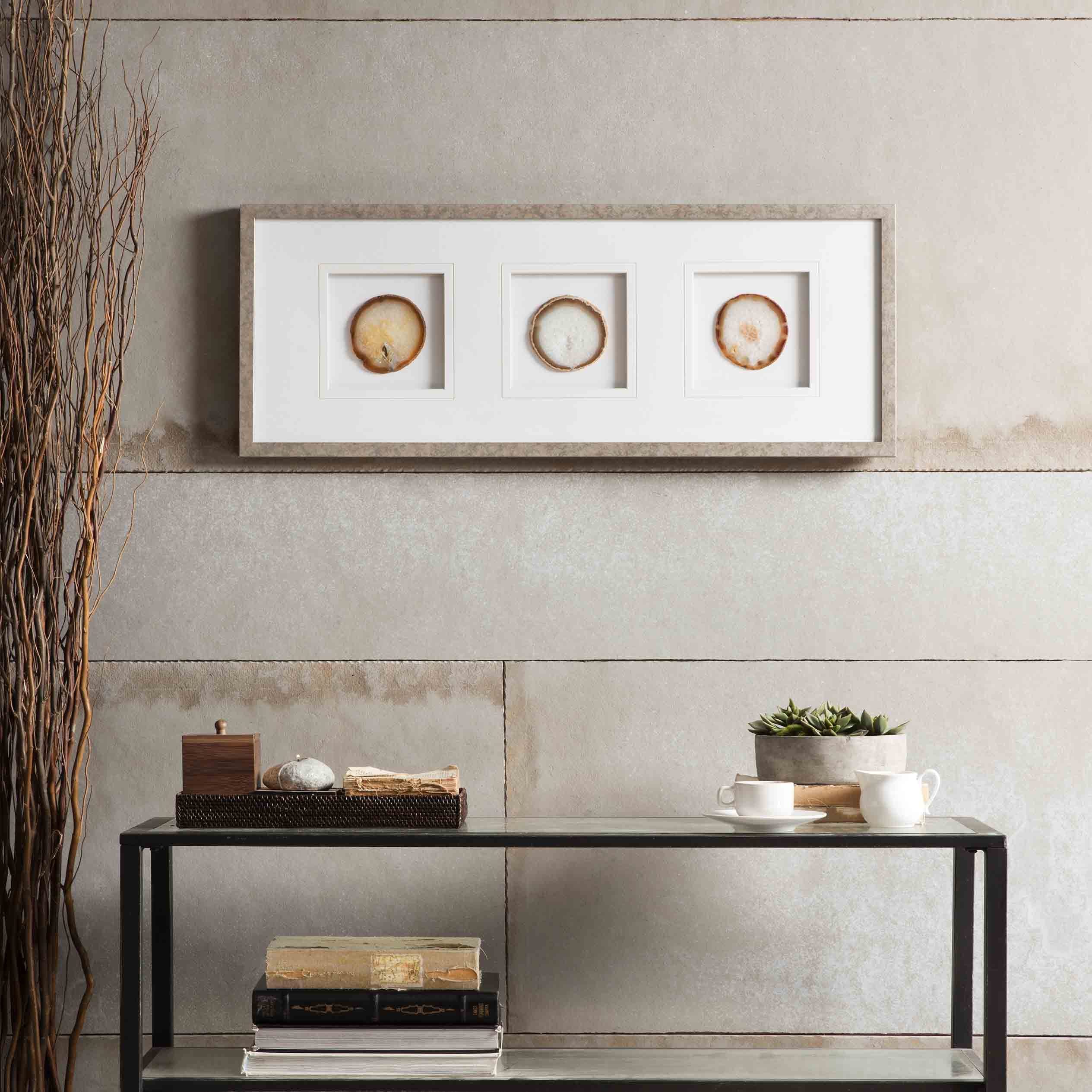 Madison Park Natural Agate Trio Real Stone Framed Glass and Double Matted Wall Art