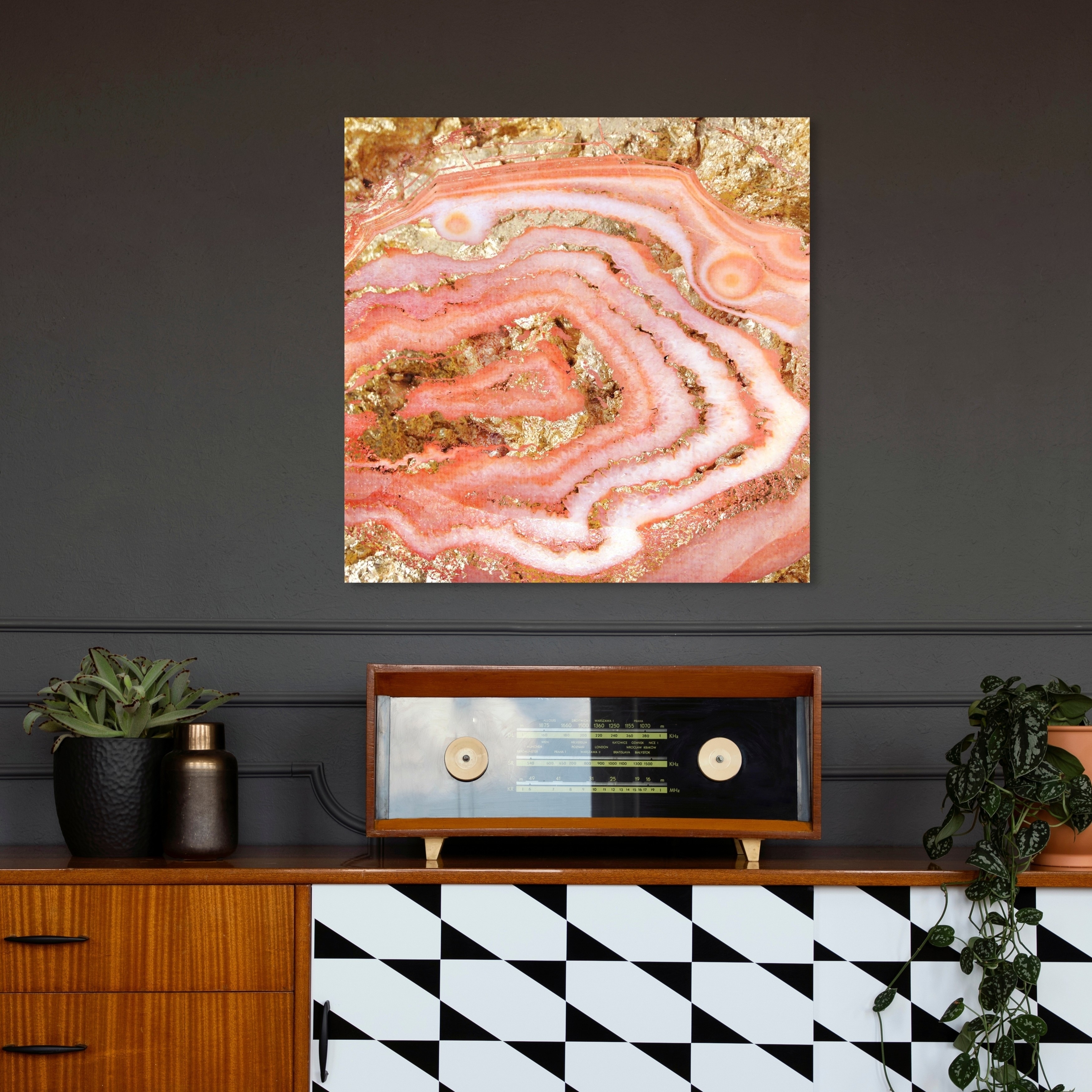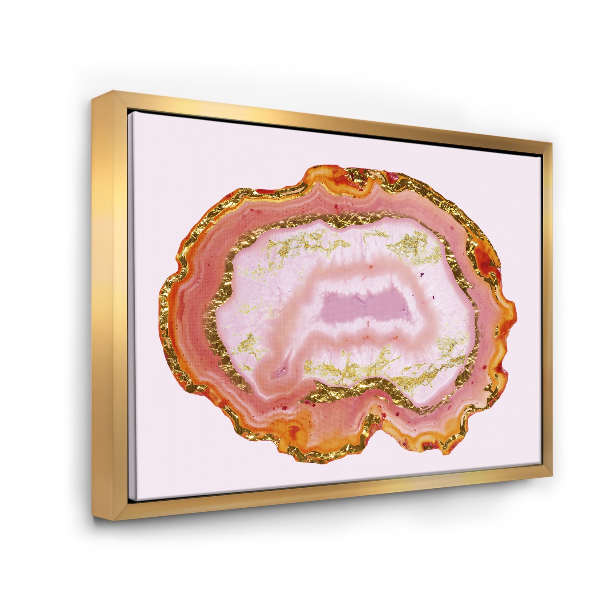 Designart "Pink and Gold Chalcedony Agate" Modern Framed Canvas Wall Art Print