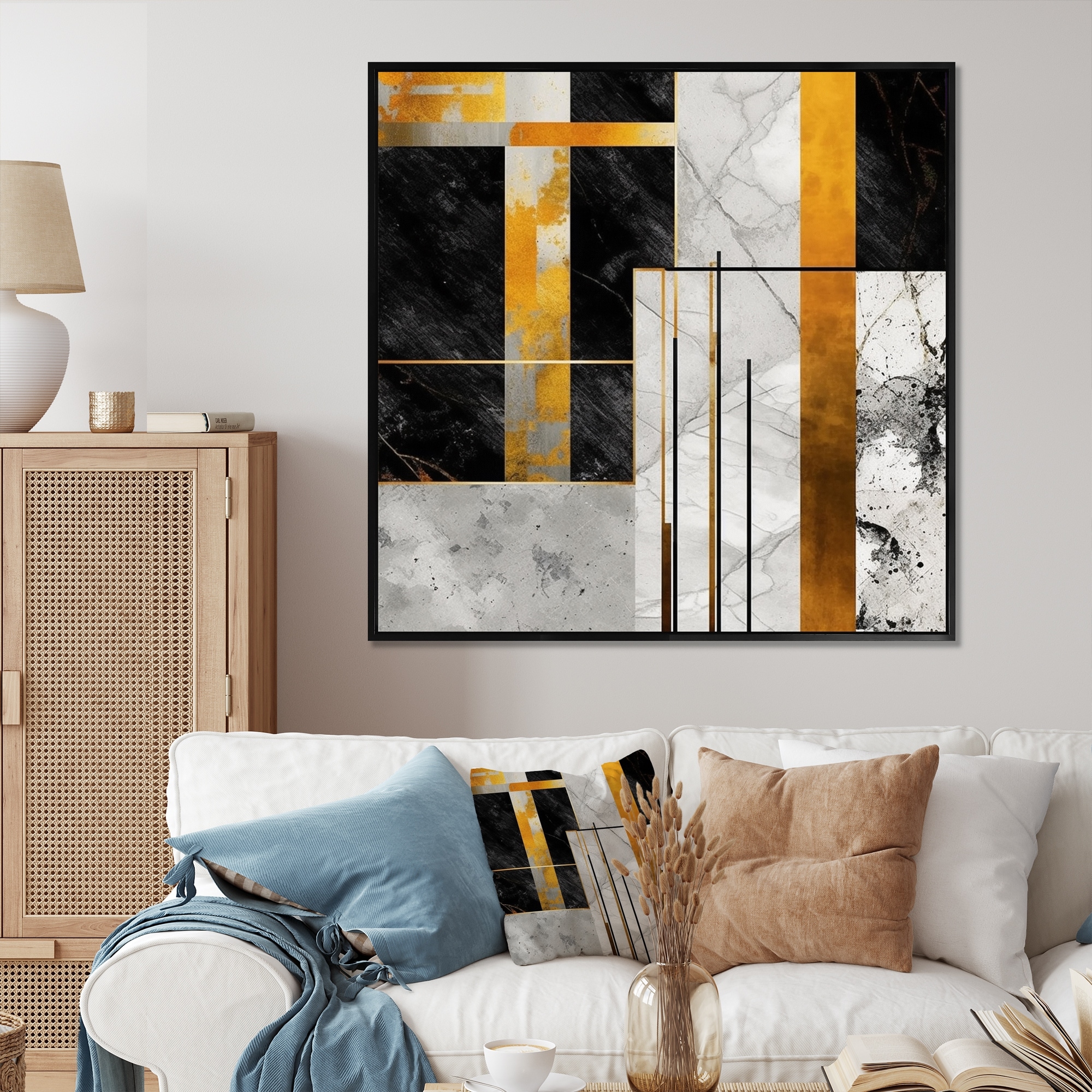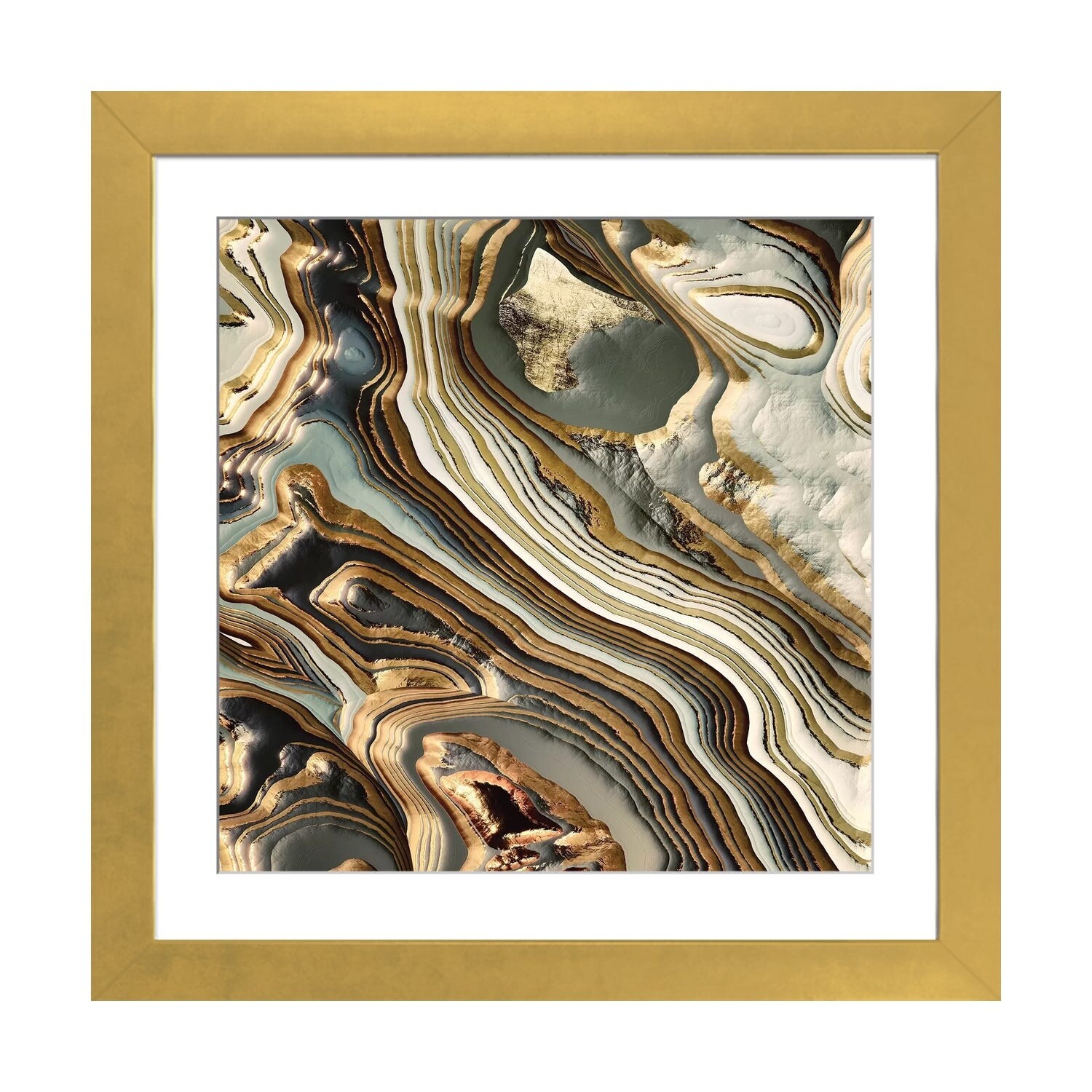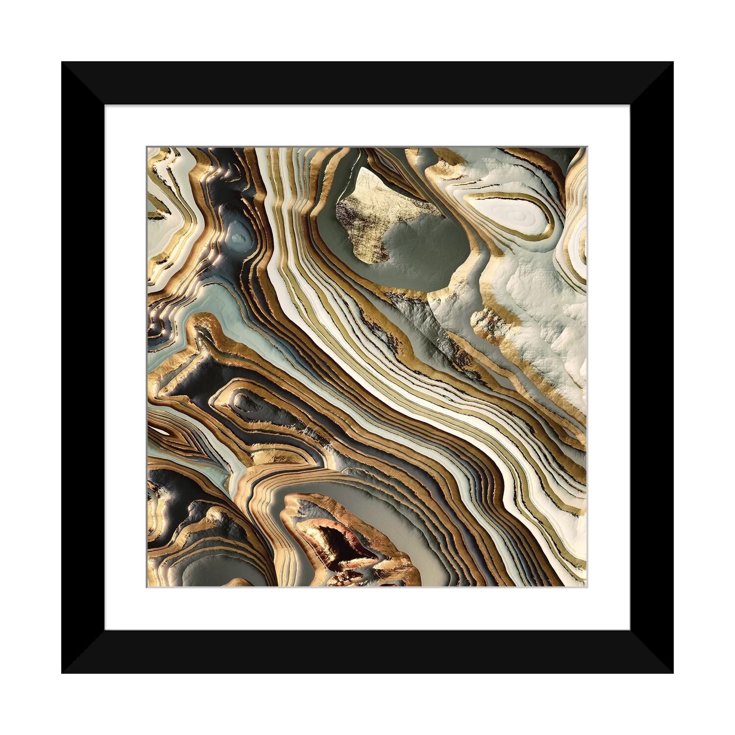 Designart "Marble Granite Agate With Touches of Gold VII" Modern Geometric Framed Wall Decor