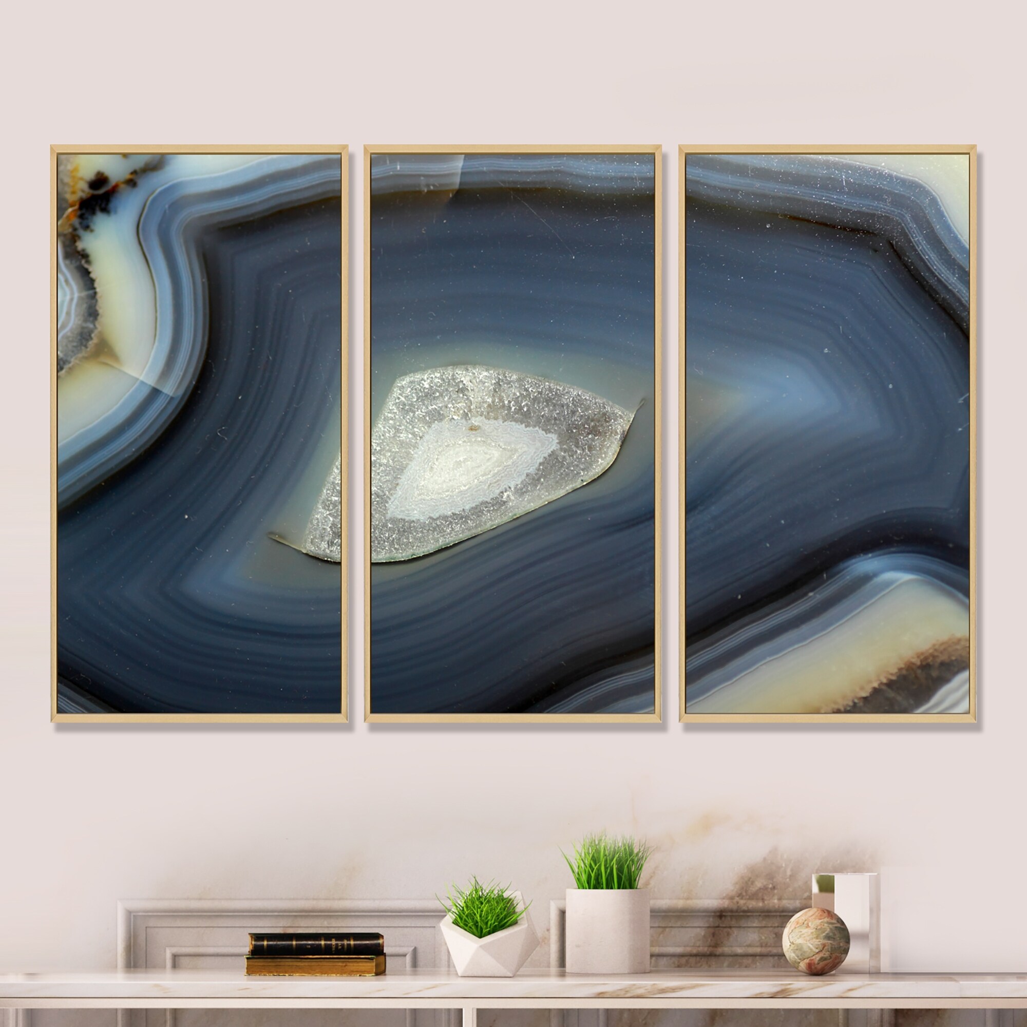 Designart "Beautiful Slice of Agate on Black" Abstract Framed Canvas Wall Art Set of 3 - 4 Colors of Frames