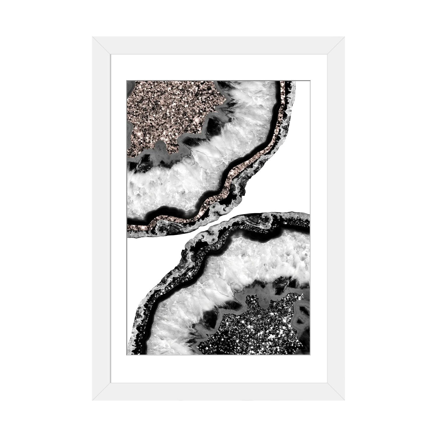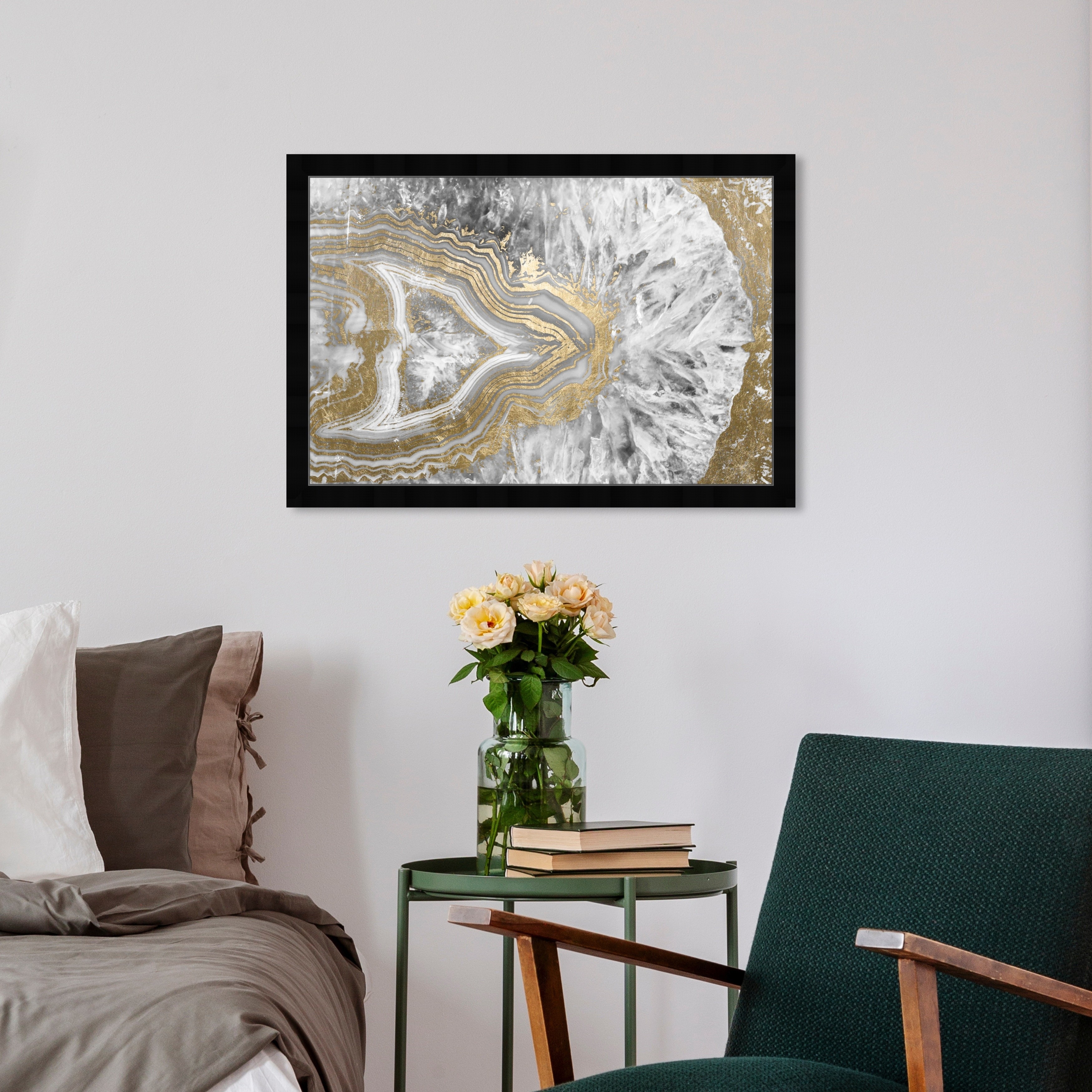 Oliver Gal 'Agate Geode Crystal' Abstract Framed Wall Art Prints Crystals - Gold, White