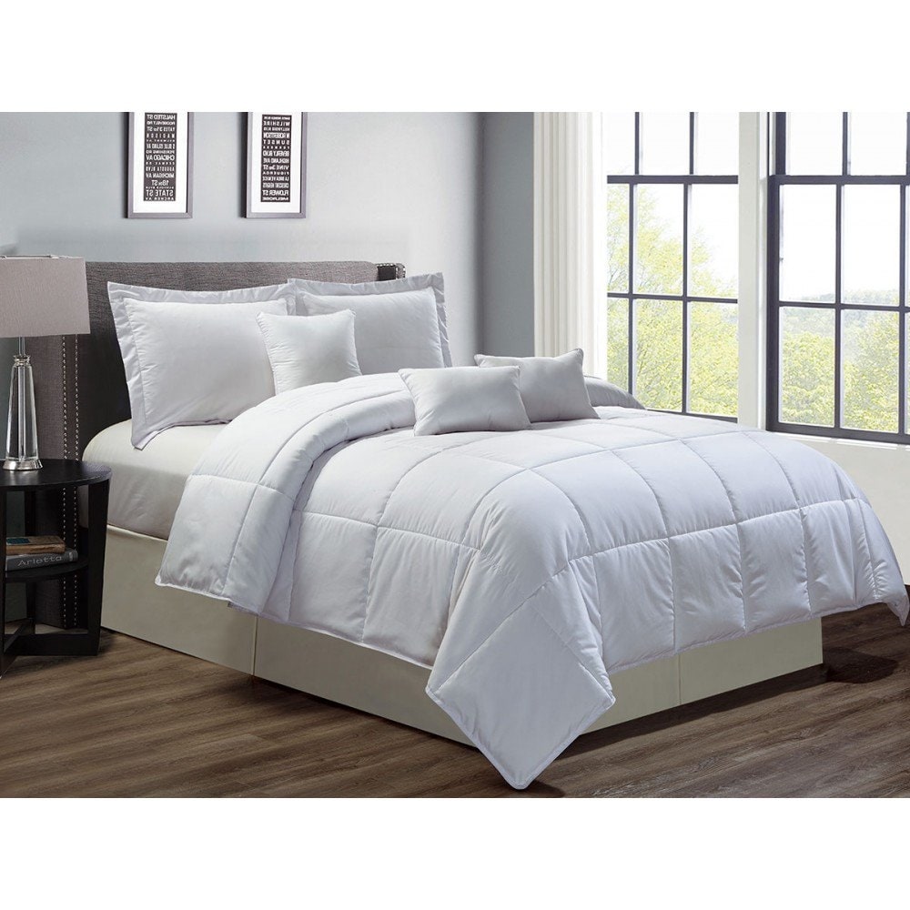 White 7 Piece Down Alternative Bedding Comforter Sheet Set