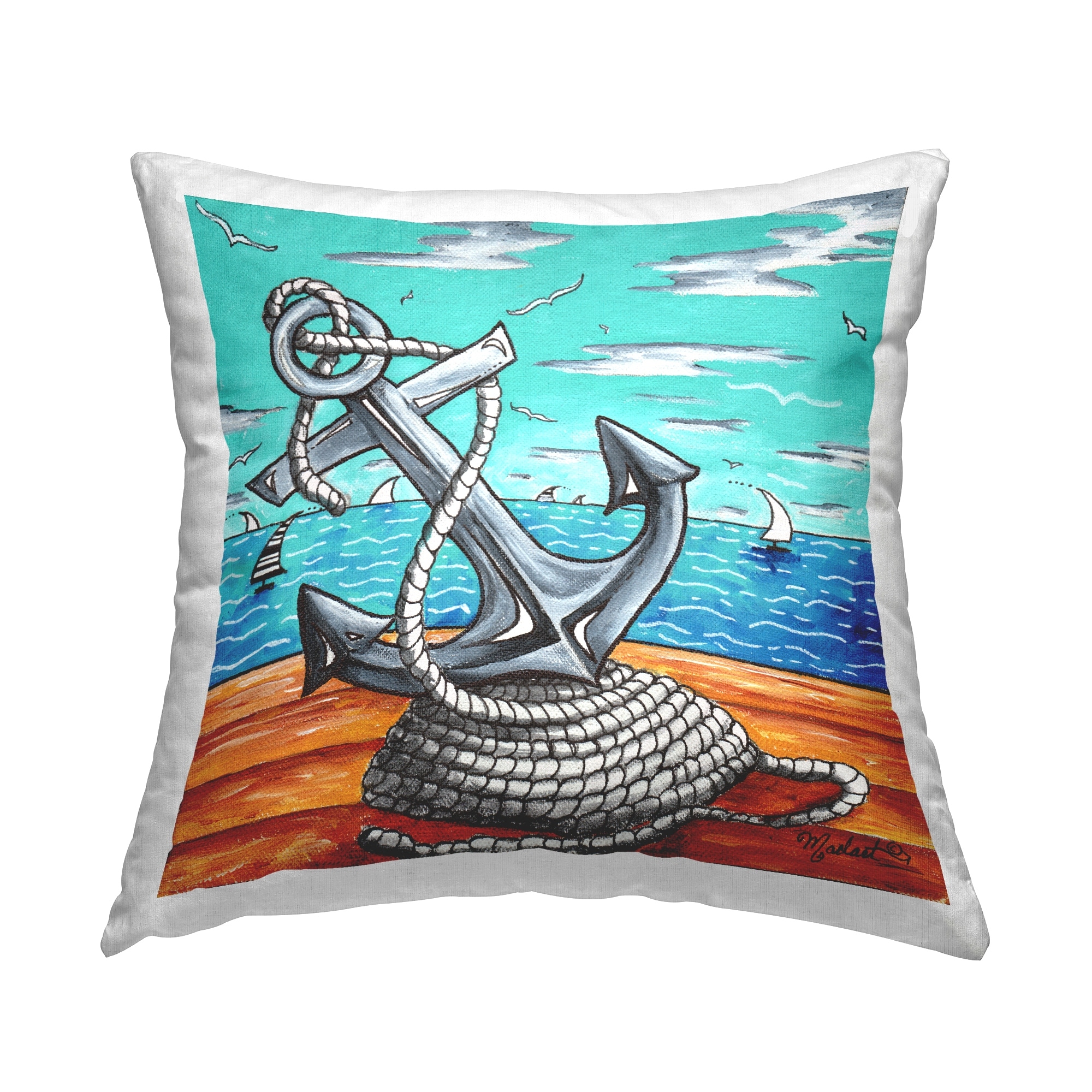 Stupell Industries Nautical Anchor Rope Sailboats Printed Throw Pillow Design by Megan Duncanson