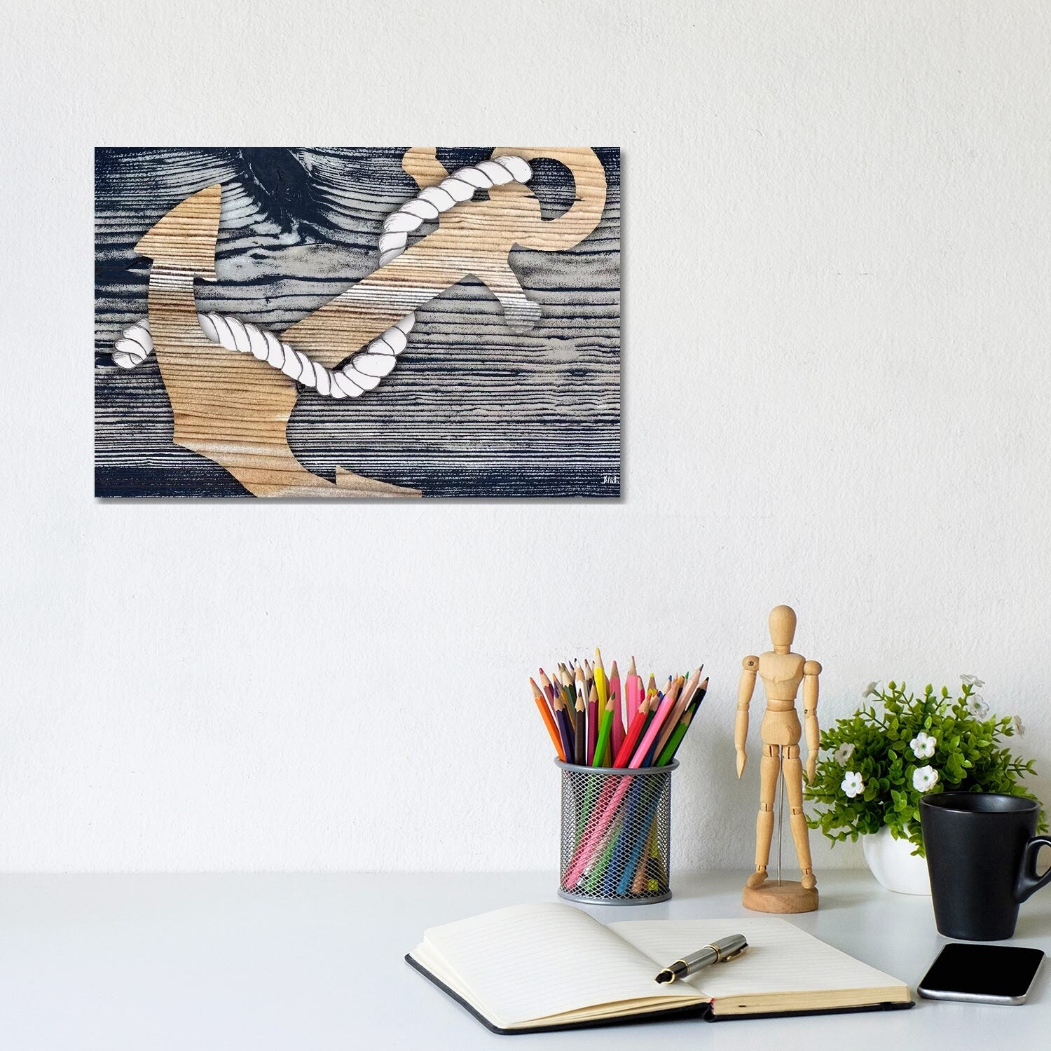Anchor on Wood - Wrapped Canvas Wall Art