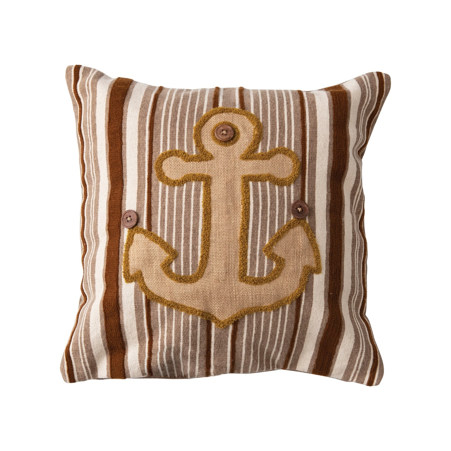 Woven Cotton Blend Appliqued Anchor Pillow with Stripes and Wood Buttons