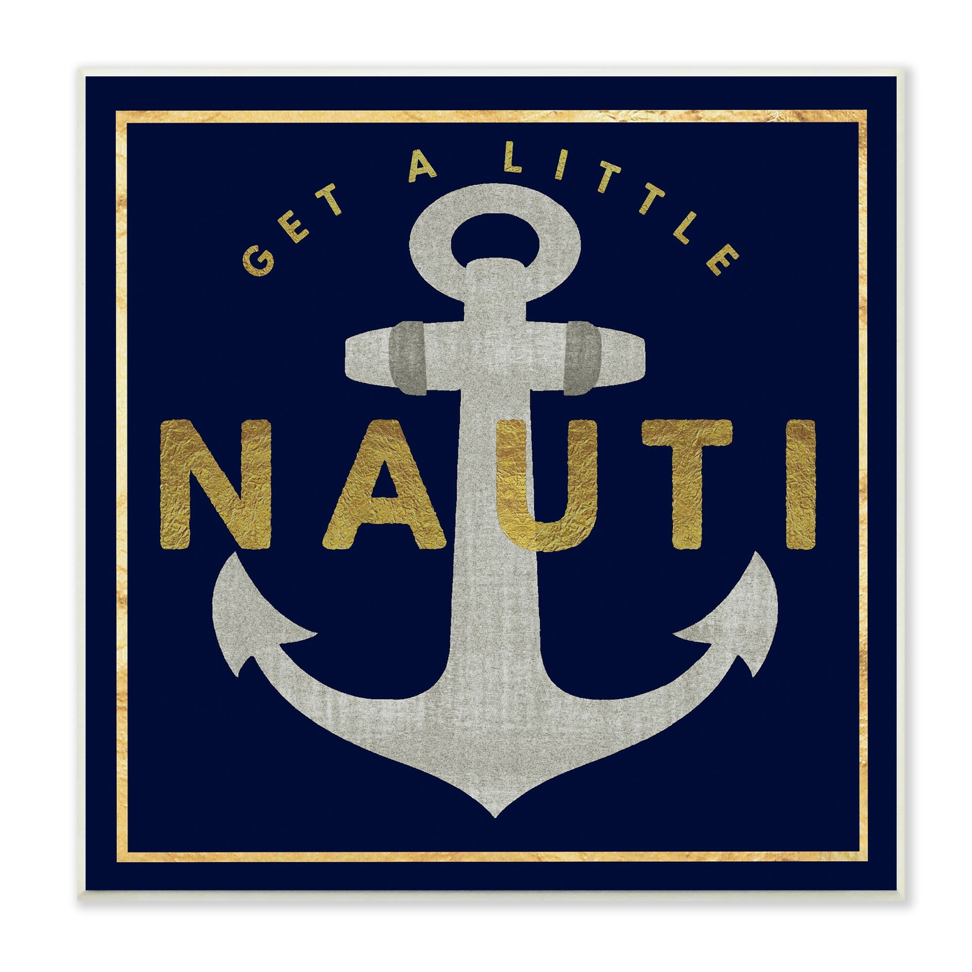 Stupell Get Nauti Witty Nautical Anchor Phrase Typography Wood Wall Art, Design by Graffitee Studios - Blue