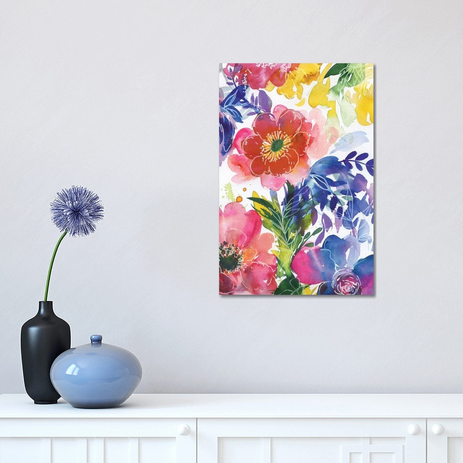 iCanvas "Abstractflowers In Blue, Yellow, Purple" by Andrea Kosar Canvas Print