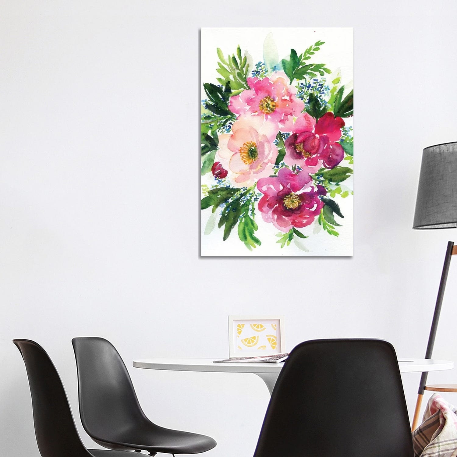 iCanvas "5 Pink Peonies in Watercolor" by Andrea Kosar Canvas Print