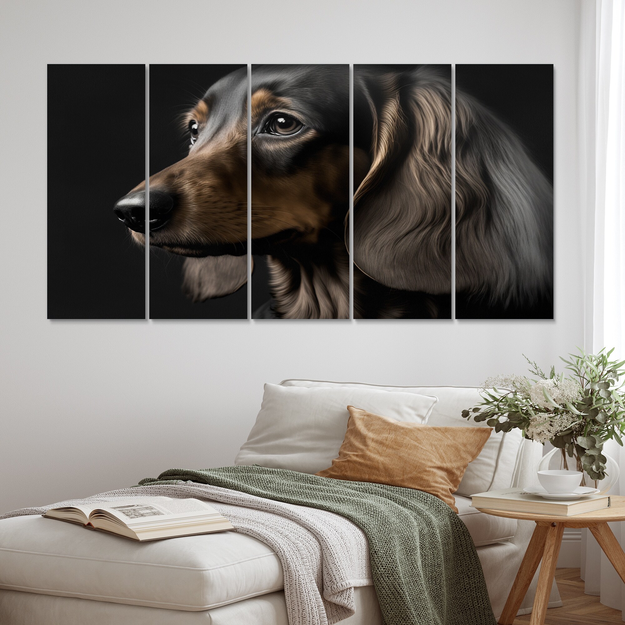 Designart "Portrait Of a Contemporary Dachshund" Animals Dog Daschund Multipanel Canvas Prints
