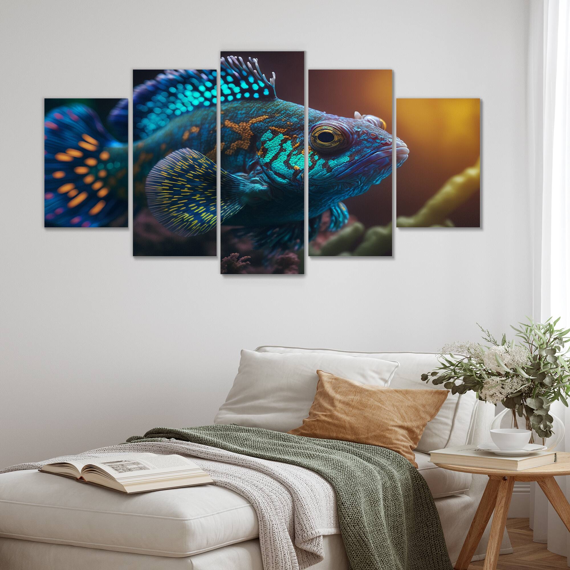 Designart "Beautiful Mandarin Fish in Shades of Blue VI" Animal Fish Multipanel Wall Art Prints