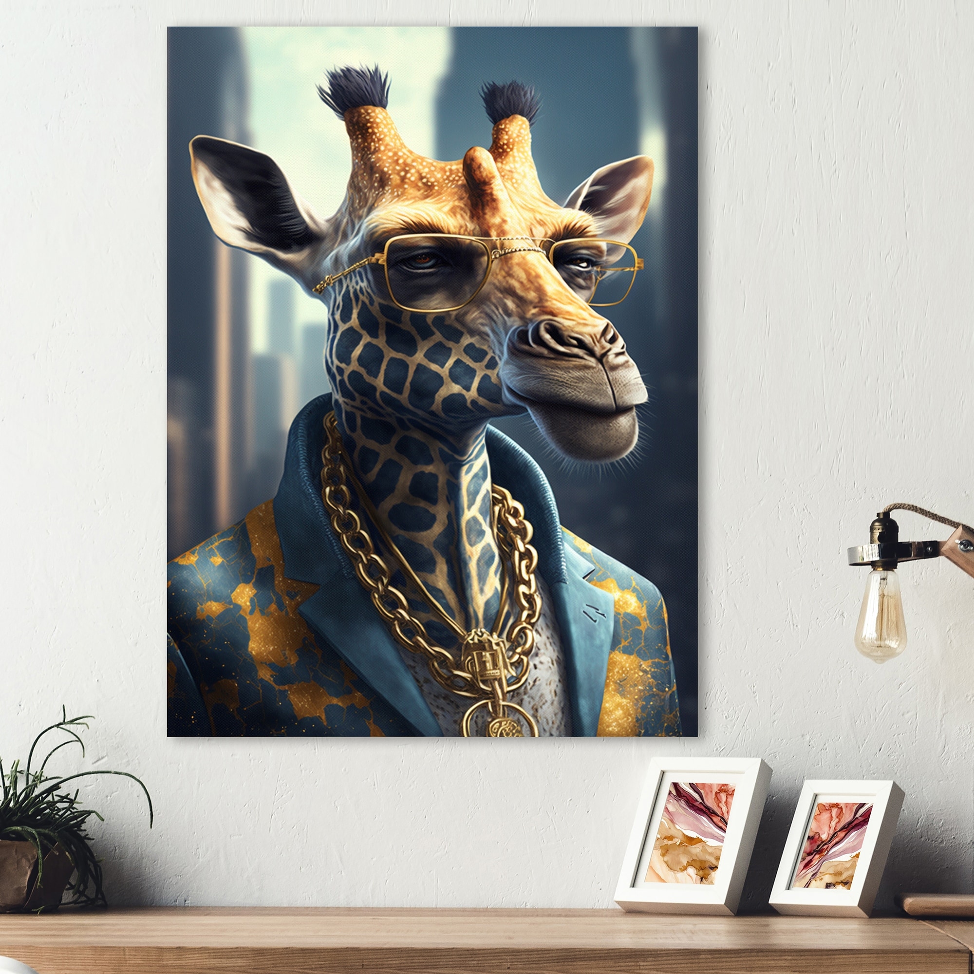 Designart 'Giraffe Ganster ' Animals Giraffe Gangster Mafia Metal Wall Art