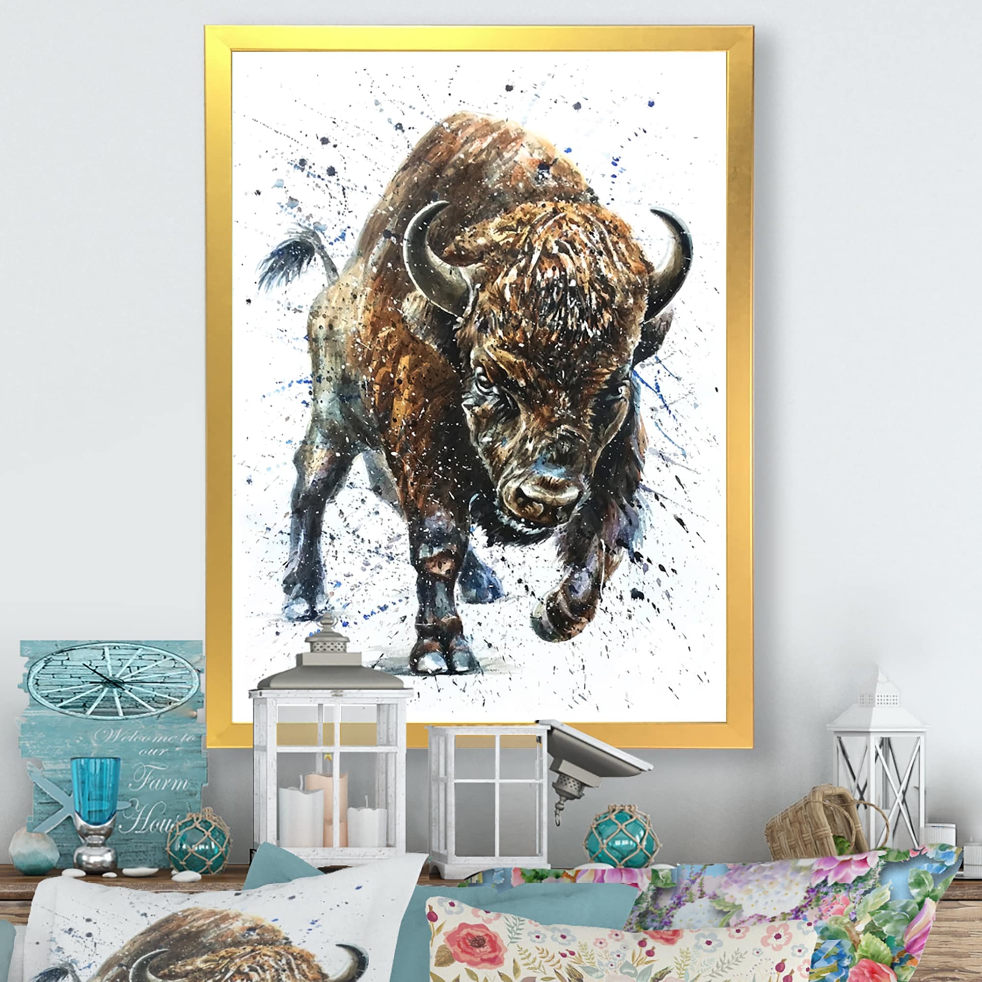 Designart "Buffalo Painting Wildlife Animals" Traditional Framed Art Print