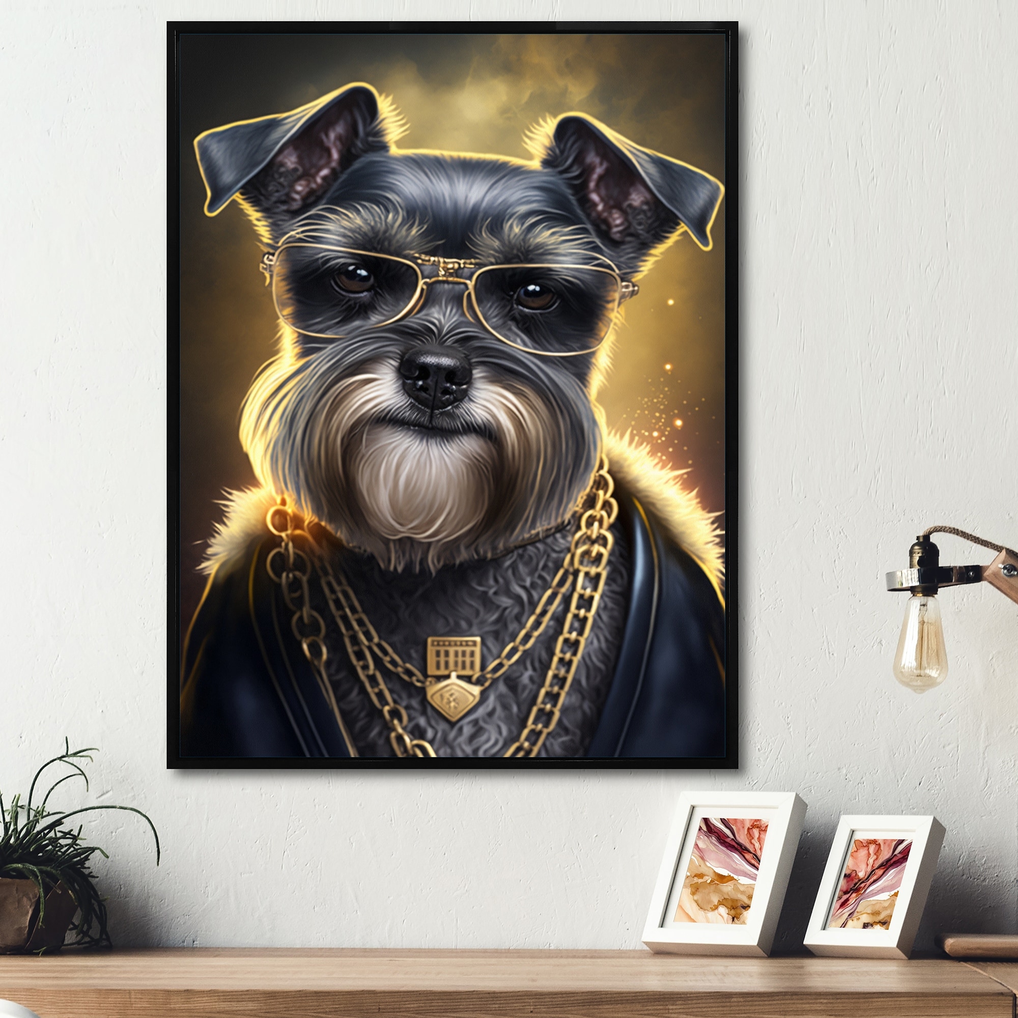Designart "Schnauzer Gangster in NYC II" Animals Framed Canvas Art Print