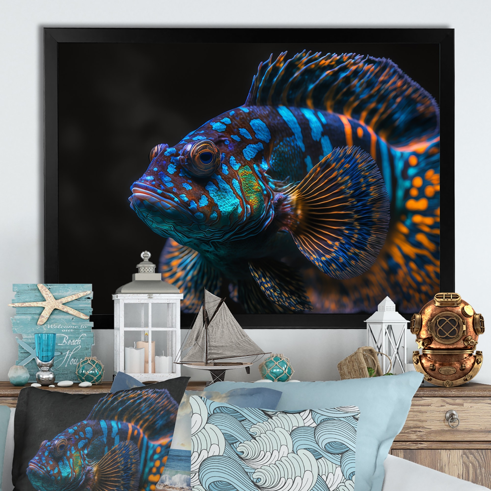Designart "Beautiful Mandarin Fish in Shades of Blue VII" Animal Fish Framed Art Print