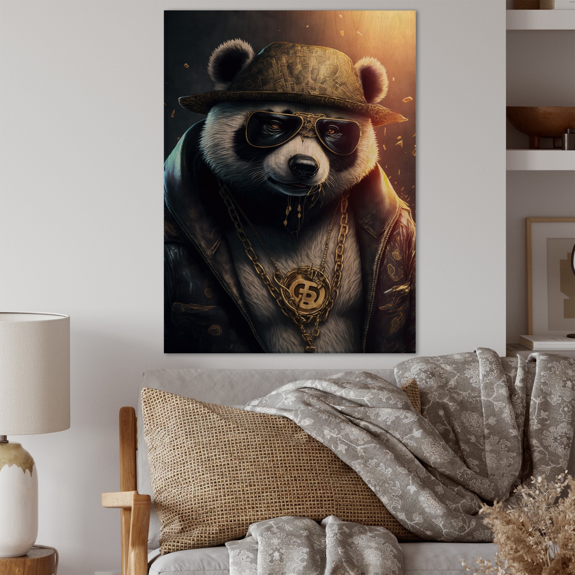 Designart "Panda Gangster in NYC II" Animals Framed Canvas Art Print