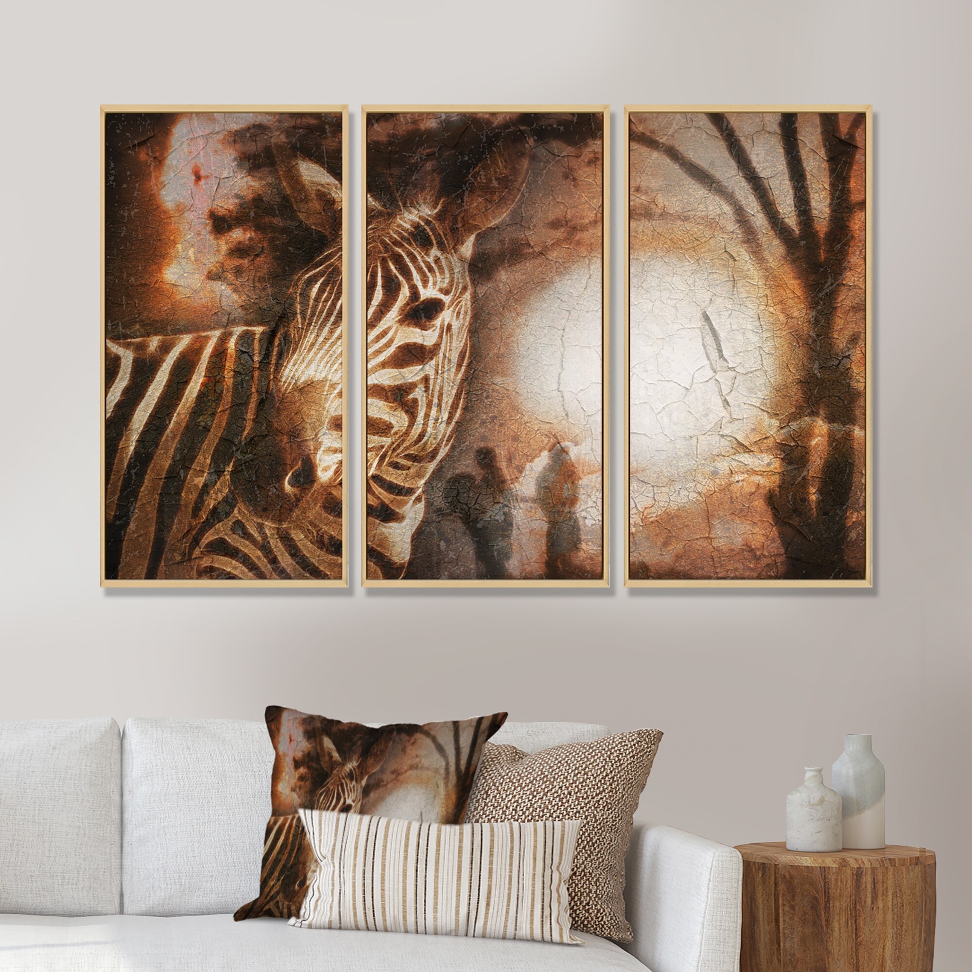 Designart "Vintage Style African Zebra" Animal Framed Art Prints Set of 3 - 4 Colors of Frames