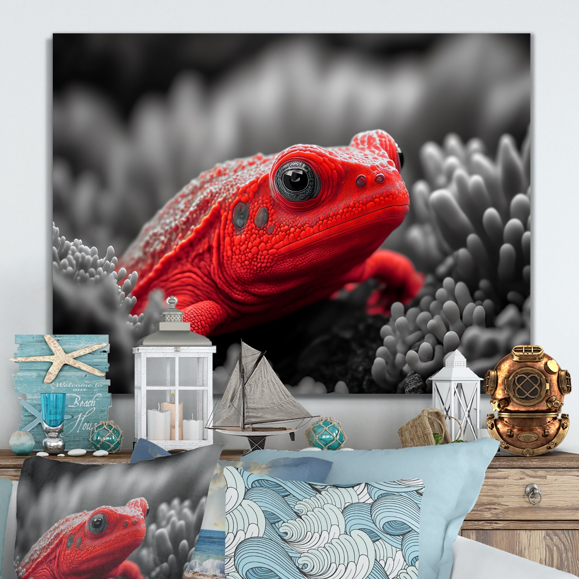 Designart "Red Underwater Creature" Animal Fish Canvas Wall Art