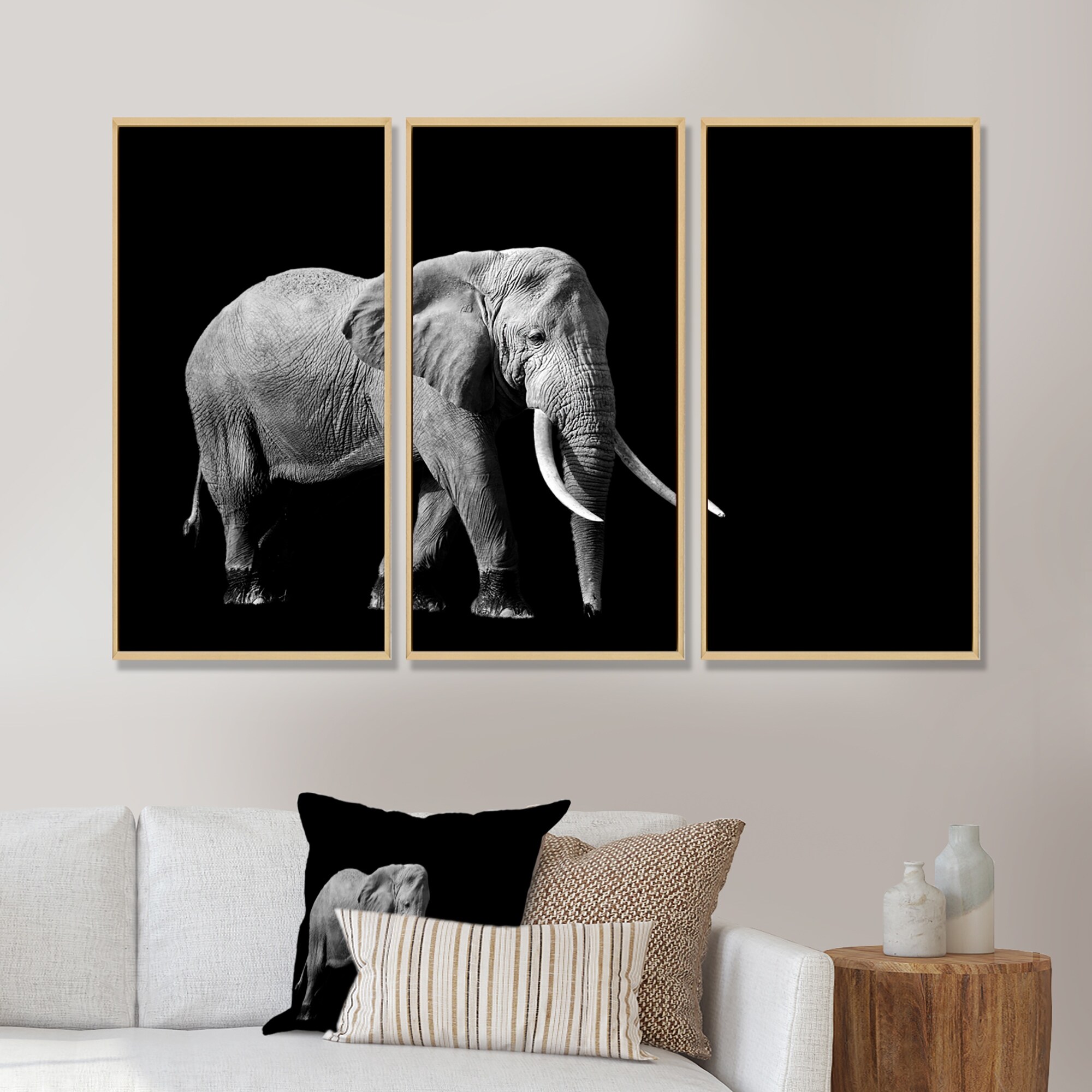 Designart "Single Walking Elephant on dark " Animal Framed Wall Decor Set of 3 - 4 Colors of Frames