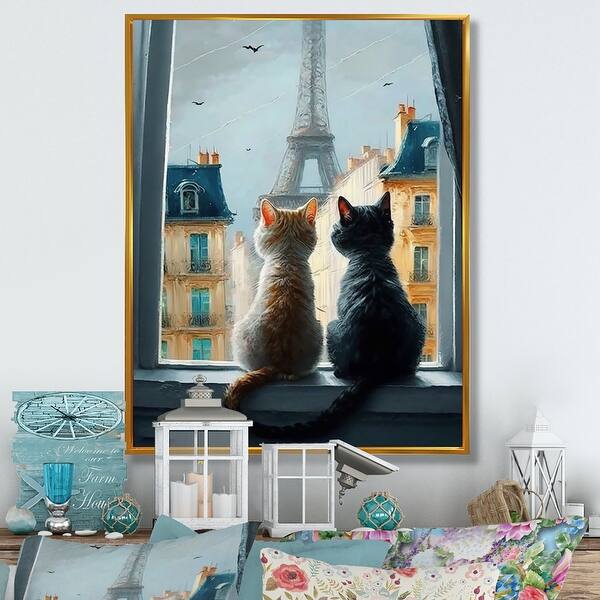 Designart "Two Cats in Paris II" Animals Framed Canvas Art Print