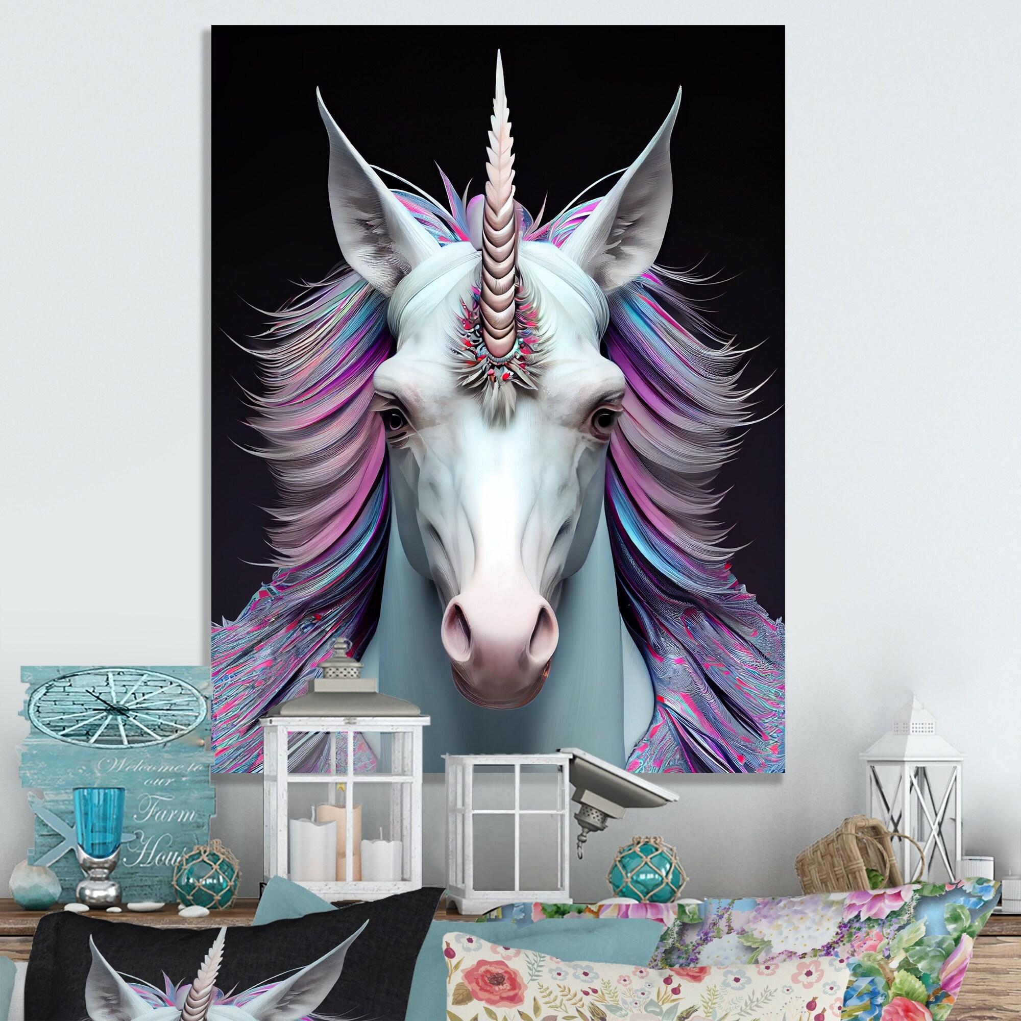 Designart "Beautiful Portrait of a Unicorn II" Animals Horse Canvas Wall Art