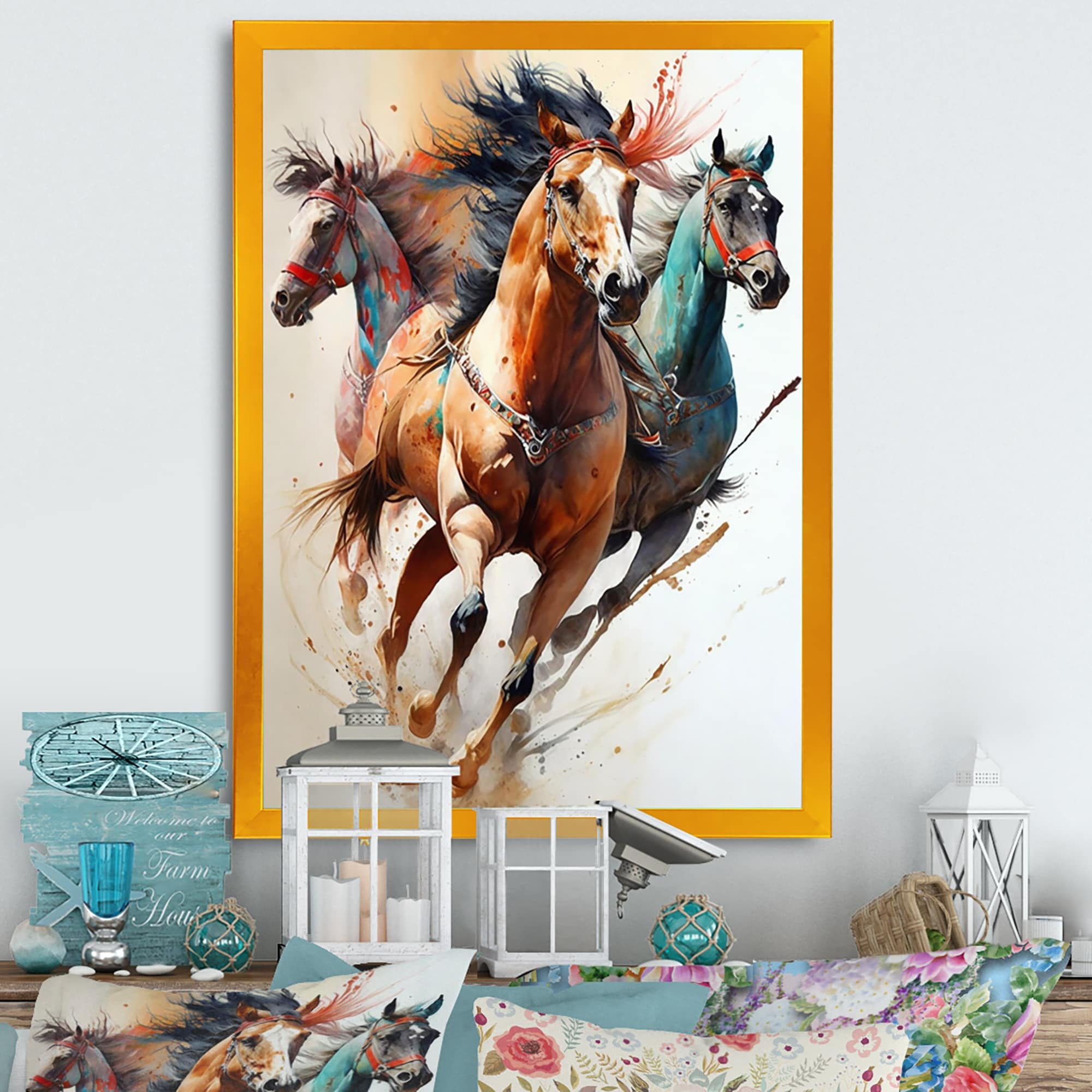 Designart "Herd Of Horses Running III" Animals Framed Art Print