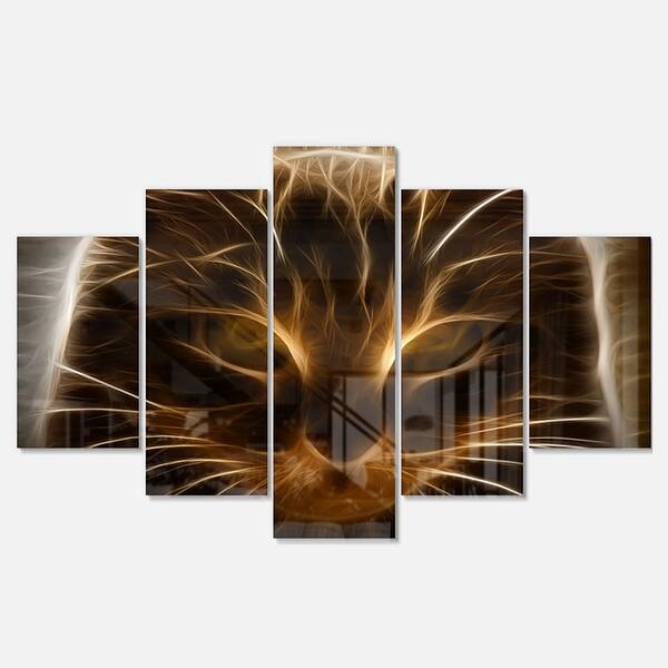 Designart 'Glowing Fractal Cat Illustration' Animal Glossy Metal Wall Art