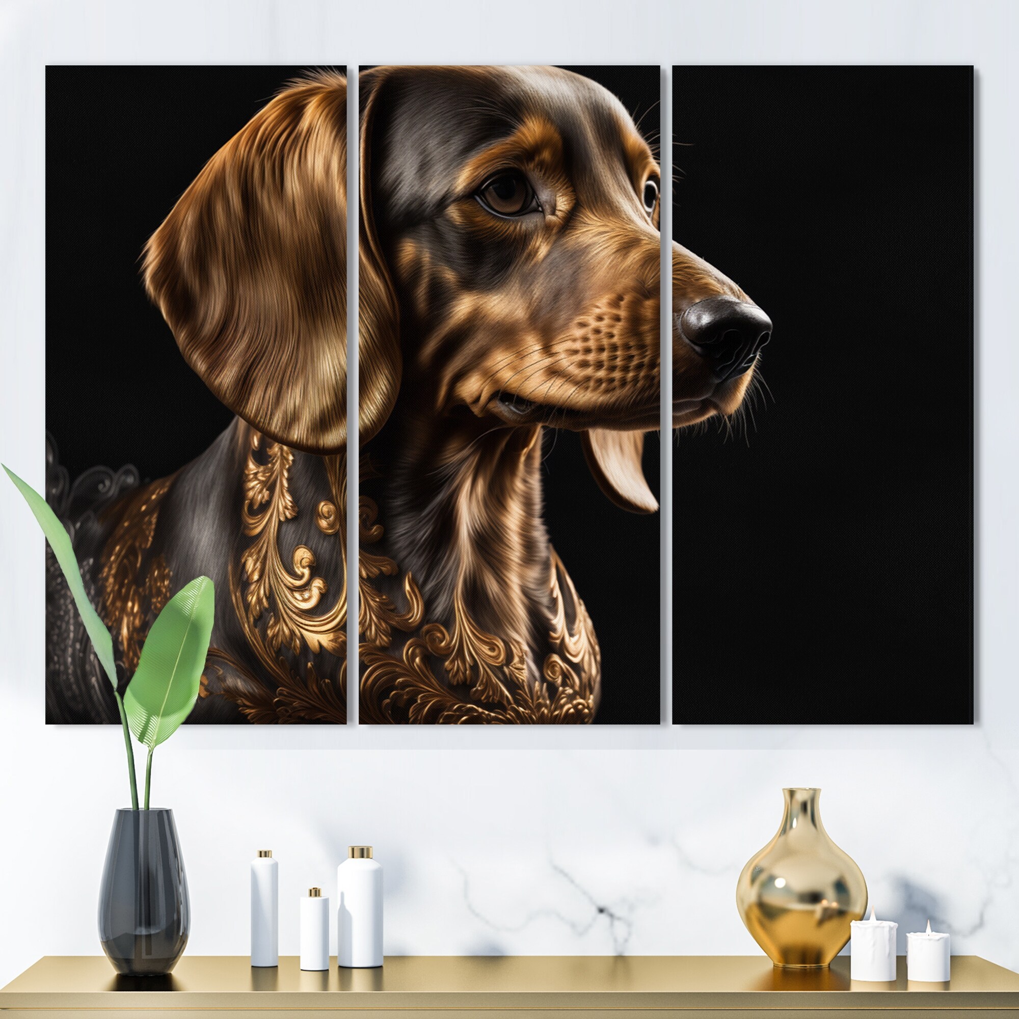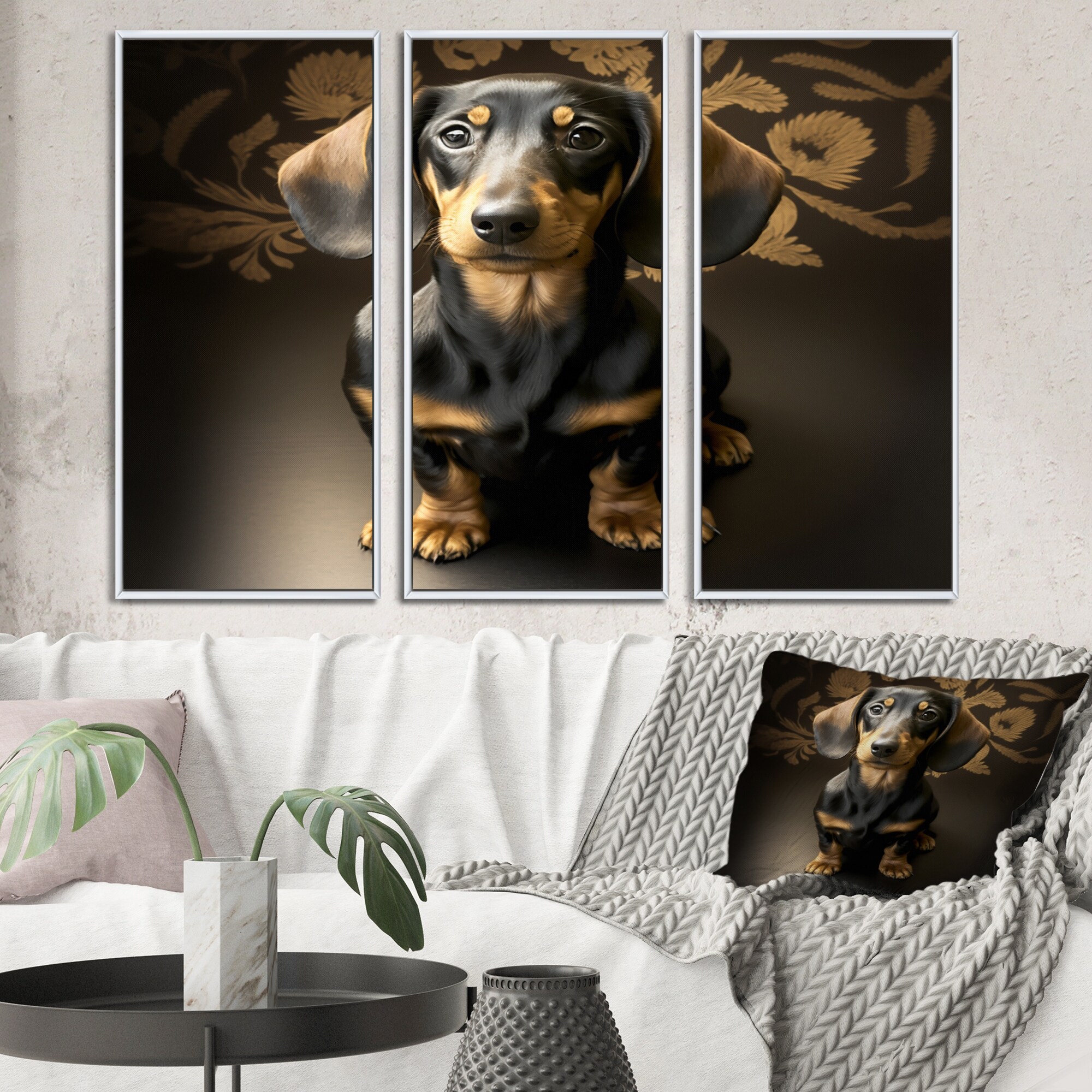 Designart "Portrait Of a Black Glam Dachshund V" Animals Framed Canvas Wall Art Print - 3 Panels
