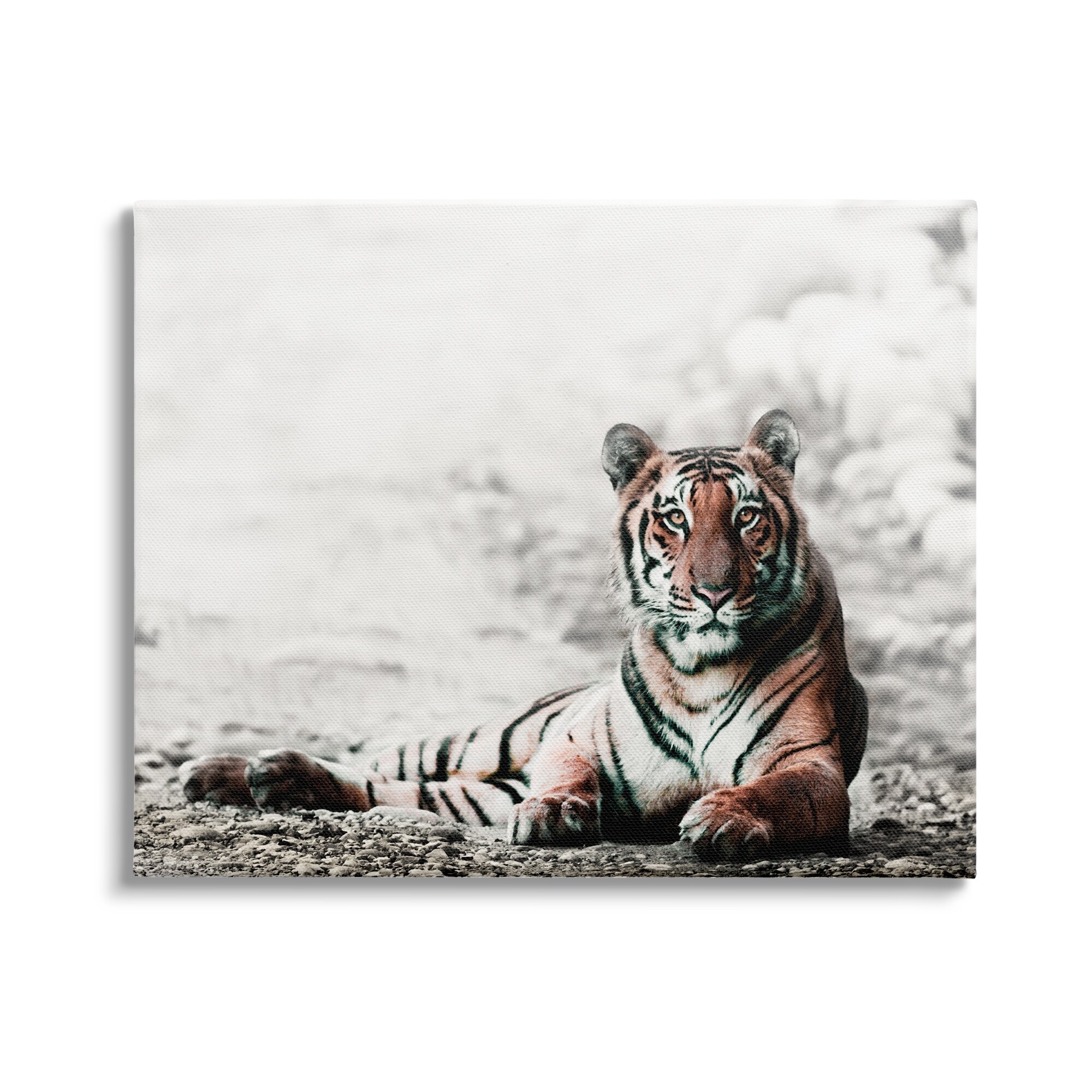 Stupell Industries Tiger Cat Resting Animal Portrait Striped Feline Canvas Wall Art - White